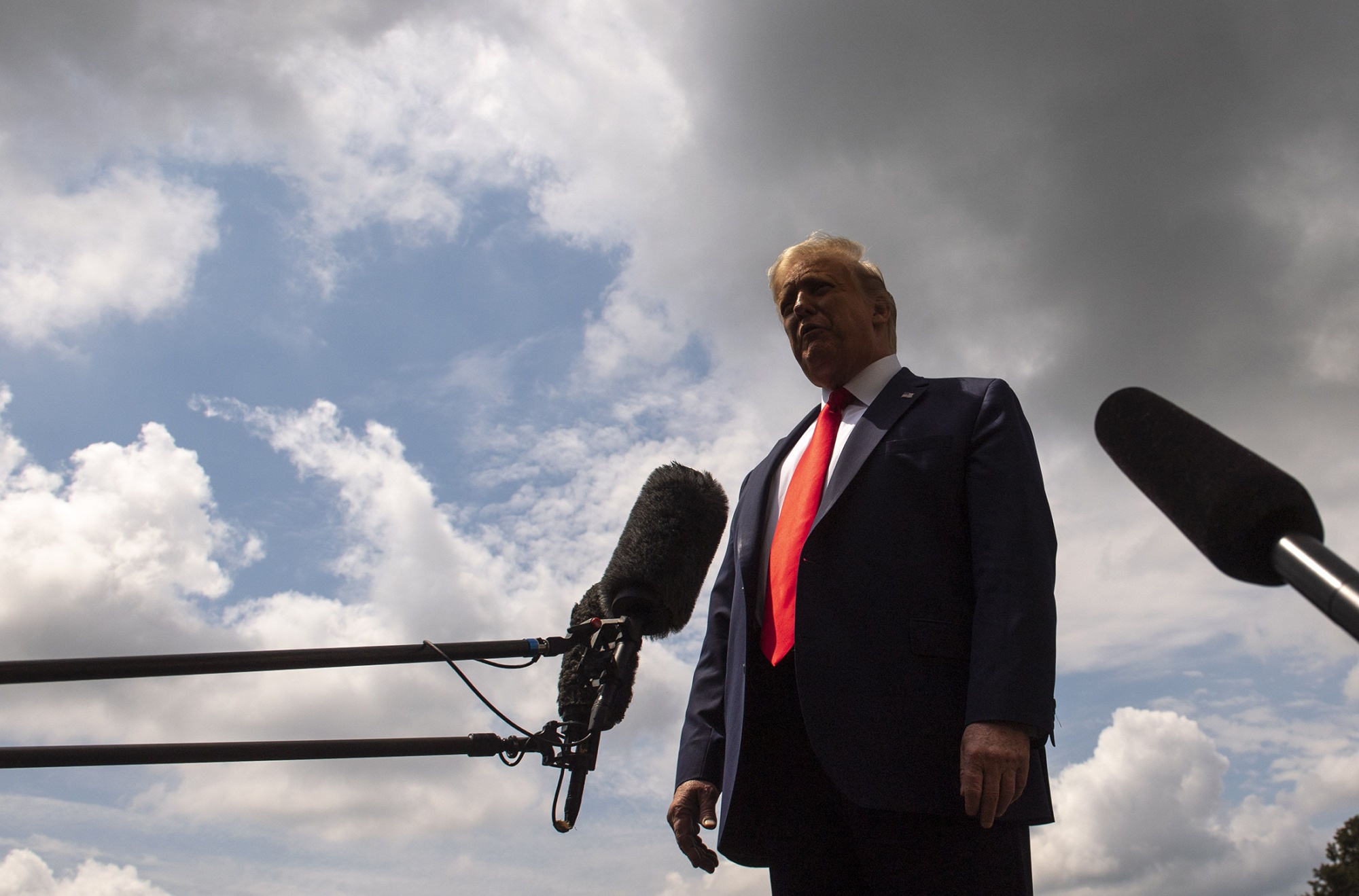 总统唐纳德·特朗普于2020年8月6日在华盛顿特区对媒体成员发表讲话。