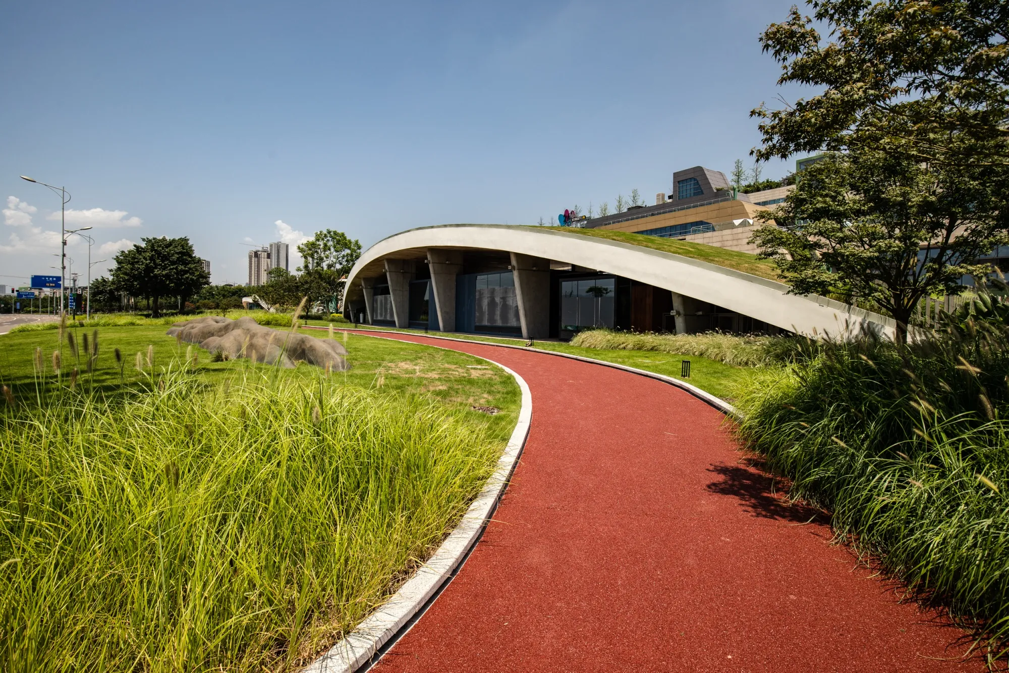 悦来是中央政府批准的试点之一。其展览中心公园的地势低于周围地面,以收集雨水,雨水通过层层水生植物进行过滤。落在屋顶上的雨水被引导到附近的公园,人行道则采用吸水材料制成。