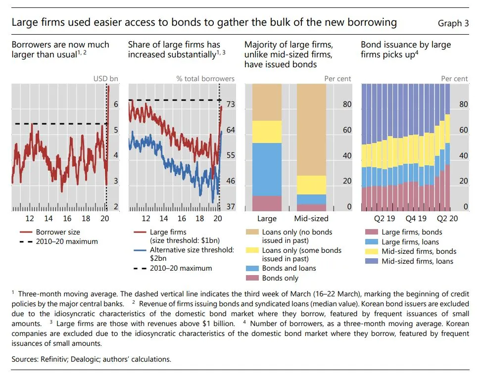 国际清算银行:大型企业利用更容易获得的债券融资来获取大部分新借款彭博社但一份新的国际清算银行公报提到了今天资本市场中的不平等主题。那里的研究人员指出,债券市场对最大发行者开放,而贷款市场的可用信贷却在收紧之间存在差异。由于较小的企业往往更活跃于贷款而非债券,这种动态导致了资本可用性的不平衡。换句话说,繁荣的债券市场意味着大企业变得更大。根据国际清算银行的数据,进入债券市场的大型企业的比例已跃升至所有借款者的70%以上,而借款者的平均收入规模是危机初期的两倍。当然,讽刺的是,获得资本最多的最大公司正在以极大的优势获得资金,锁定更低的融资成本,并建立起巨额现金储备,这在理论上可以为他们在未来几年提供优势。当美联储声称担心单买市场对整体经济的影响时,这是一种奇怪的结果。