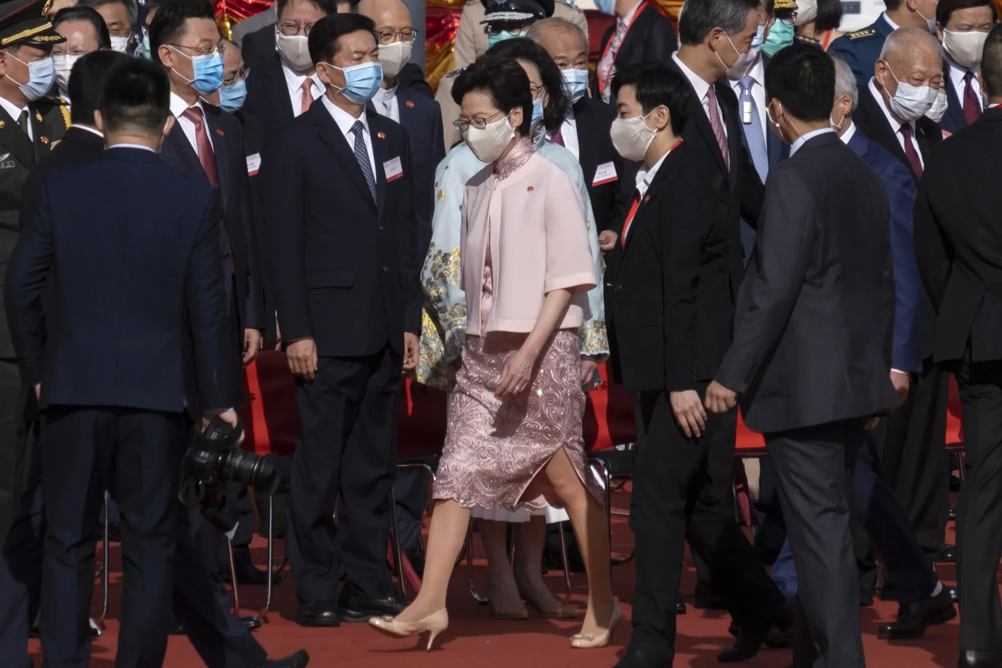 林郑月娥在7月1日举行的庆祝香港回归中国统治23周年的仪式上。摄影师:罗伊·刘/彭博社