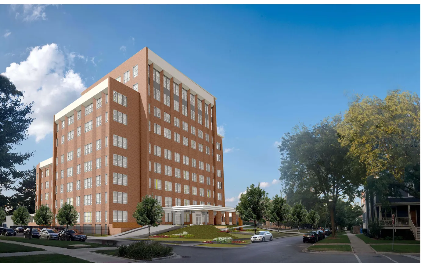在芝加哥,城市的公共住房管理局正在将长期空置的拉文斯伍德医院改造成一个可负担的老年住房项目。来源:Worn Jerabek Wiltse Architects, PC将不同的居住安排结合在一个项目中,使CHA能够保持低租金——每月收入的30%(支持性居住采用类似的公式,基于收入百分比和资产)。实际上,该项目提供了一些持续护理退休社区的优势,居民可以在原地老去,并无缝地转移到不同模块以获得更高级的护理。但这些项目的起价为4000美元,视护理水平而定,可能高达五位数——这超出了低收入老年人的承受范围。