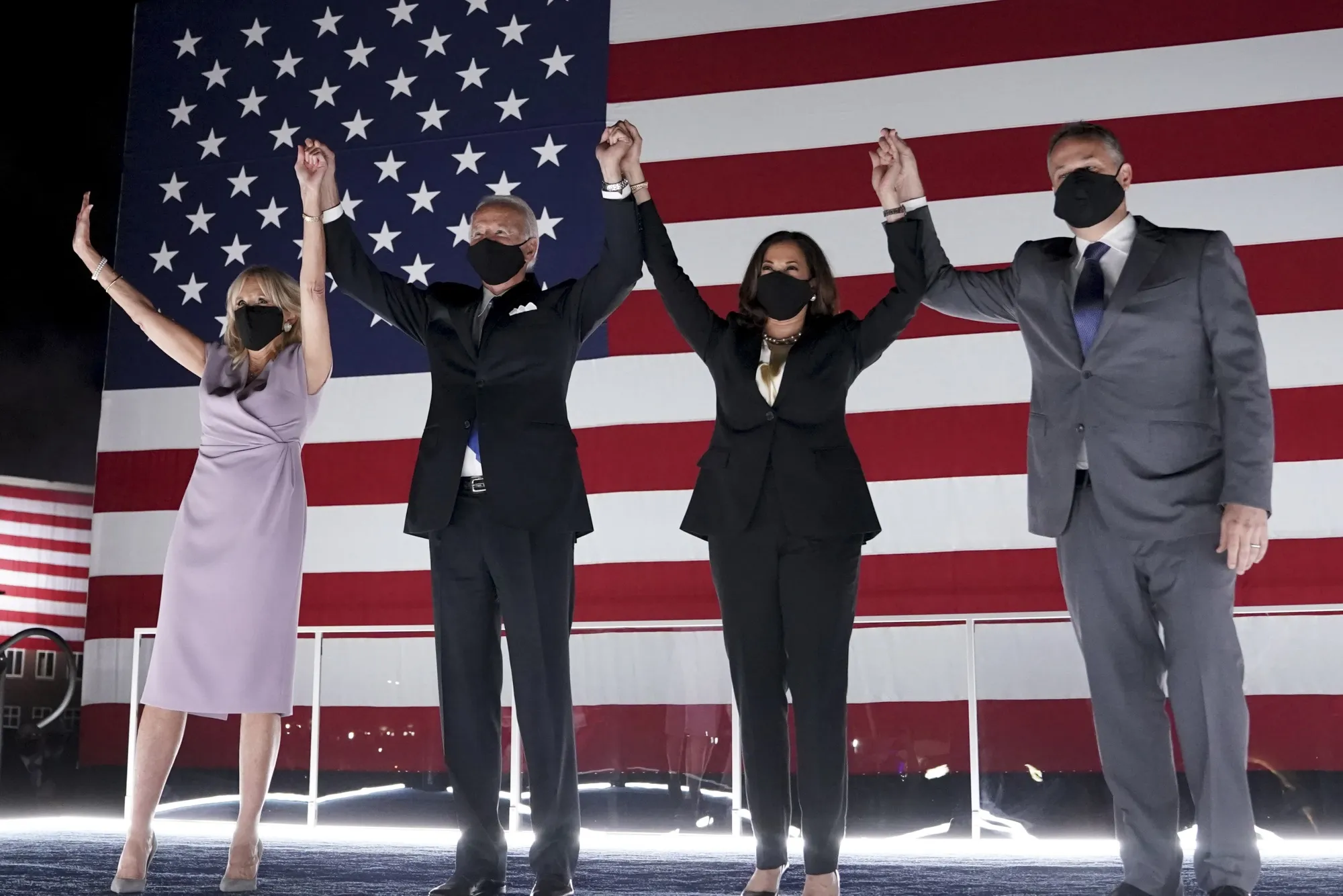 拜登与他的竞选搭档卡马拉·哈里斯及其配偶在8月20日的威尔明顿大会上。摄影师:斯特凡妮·雷诺兹/彭博社点击这里 查看本周最引人注目的政治图片,并告诉我们我们的表现如何或我们遗漏了什么,邮箱:[email protected]。