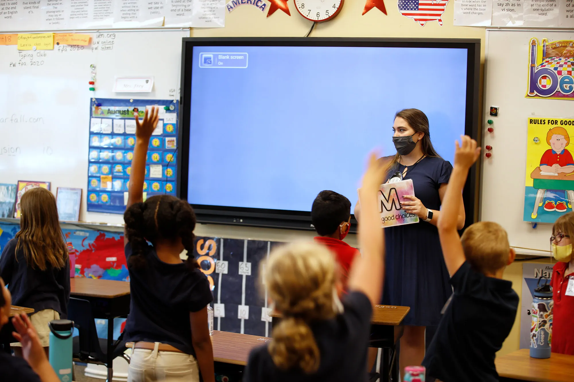 犹他州普罗沃的一所公立特许学校。根据州法令,在K-12学校中不戴口罩的犹他州学生和工作人员可能会被控以轻罪。乔治·弗雷/彭博社通过盖蒂图片社现在病例的激增正在减退,正好赶上 尝试重返学校 的风险可能引发新一轮疫情。