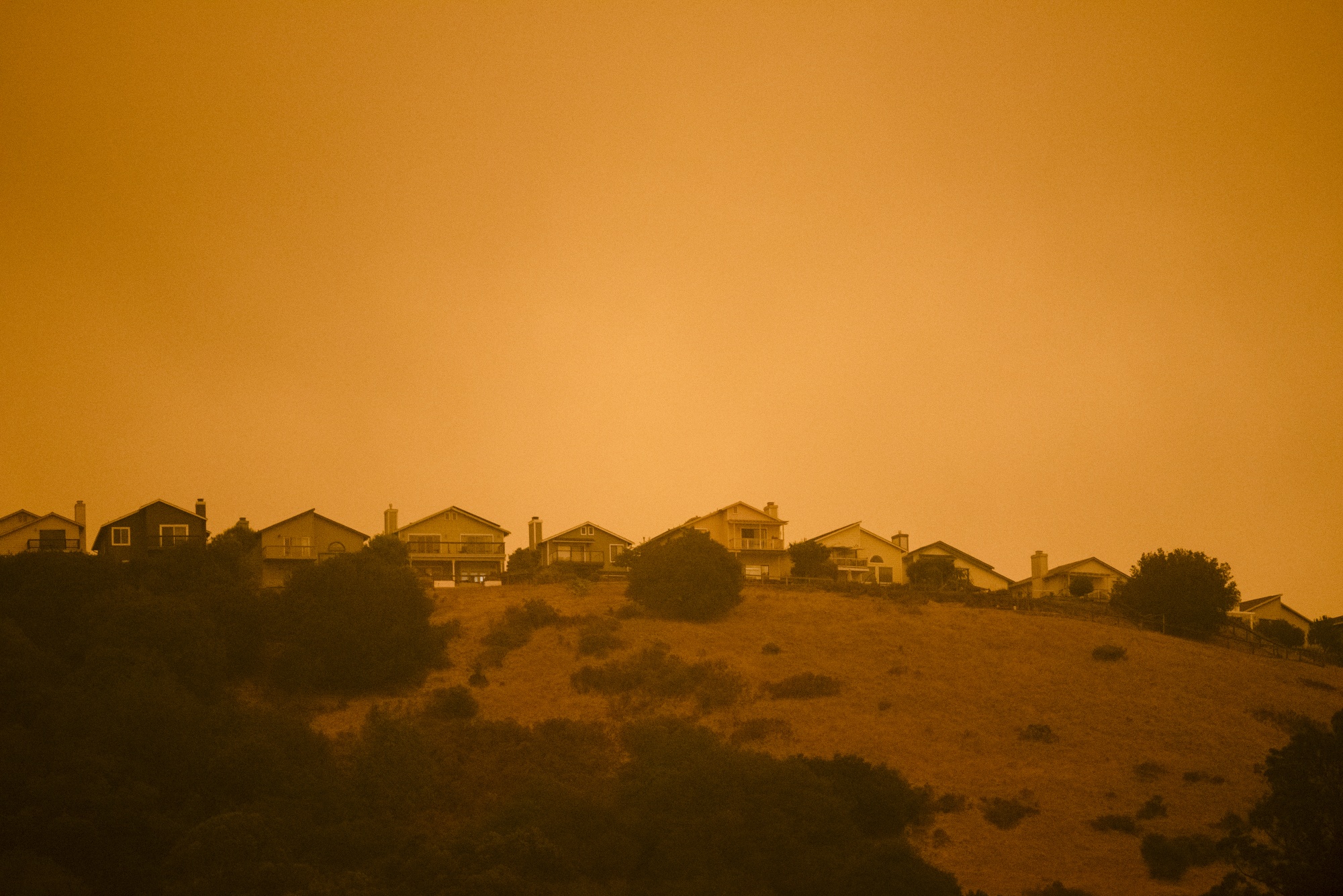 烟雾和雾气笼罩着加利福尼亚州奥克兰的住宅,时间是9月9日。摄影师:迈克尔·肖特/彭博社