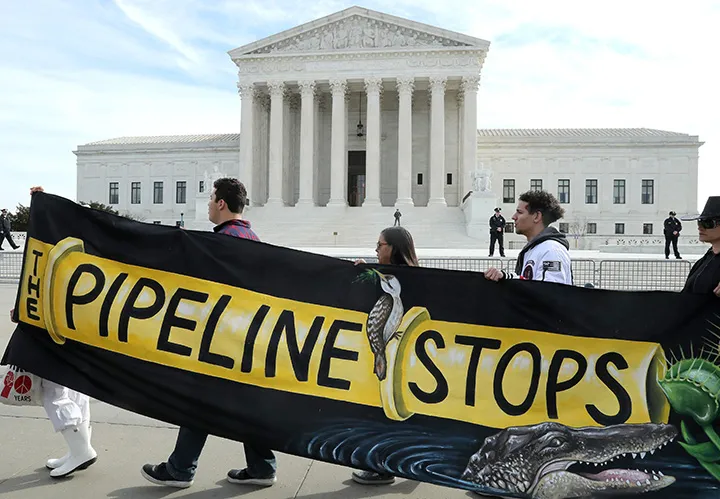 示威者在华盛顿特区美国最高法院前抗议大西洋海岸管道,时间为2月24日。摄影师:马克·威尔逊/美联社北美在美国,环境反对派帮助推动了大西洋海岸管道的成本几乎翻倍,达到80亿美元。今年,美国约有100亿美元的天然气管道项目被取消——即使天然气在唐纳德·特朗普总统的政府中享有政治支持。