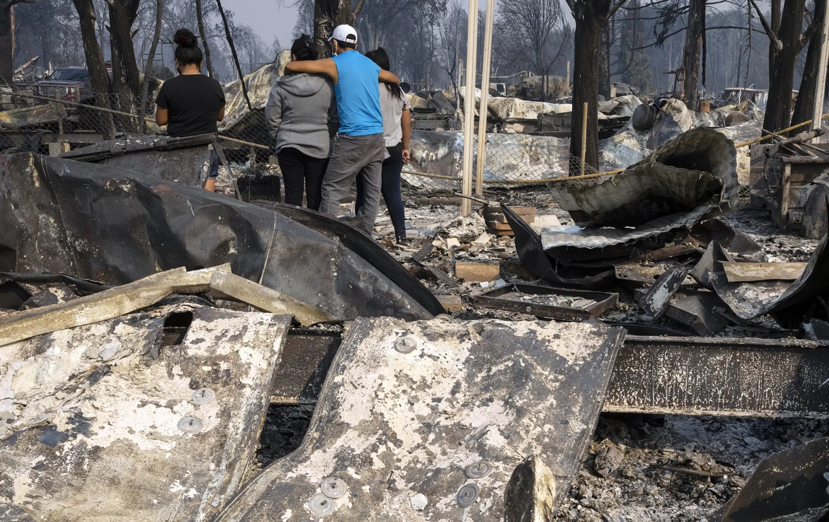 一家人在俄勒冈州凤凰城的家园废墟旁站立,时间是9月10日。摄影师:保拉·布朗斯坦/AP照片哈里斯也住在旧金山地区,家中有一个11个月大的婴儿和一个4岁的孩子。她警告说,上周在一篇博客文章中,野火烟雾可能会加重哮喘和心脏病发作的发生率,儿童、孕妇以及那些患有心脏病或呼吸系统疾病的人尤其脆弱。那时火灾仅烧毁了170万英亩。