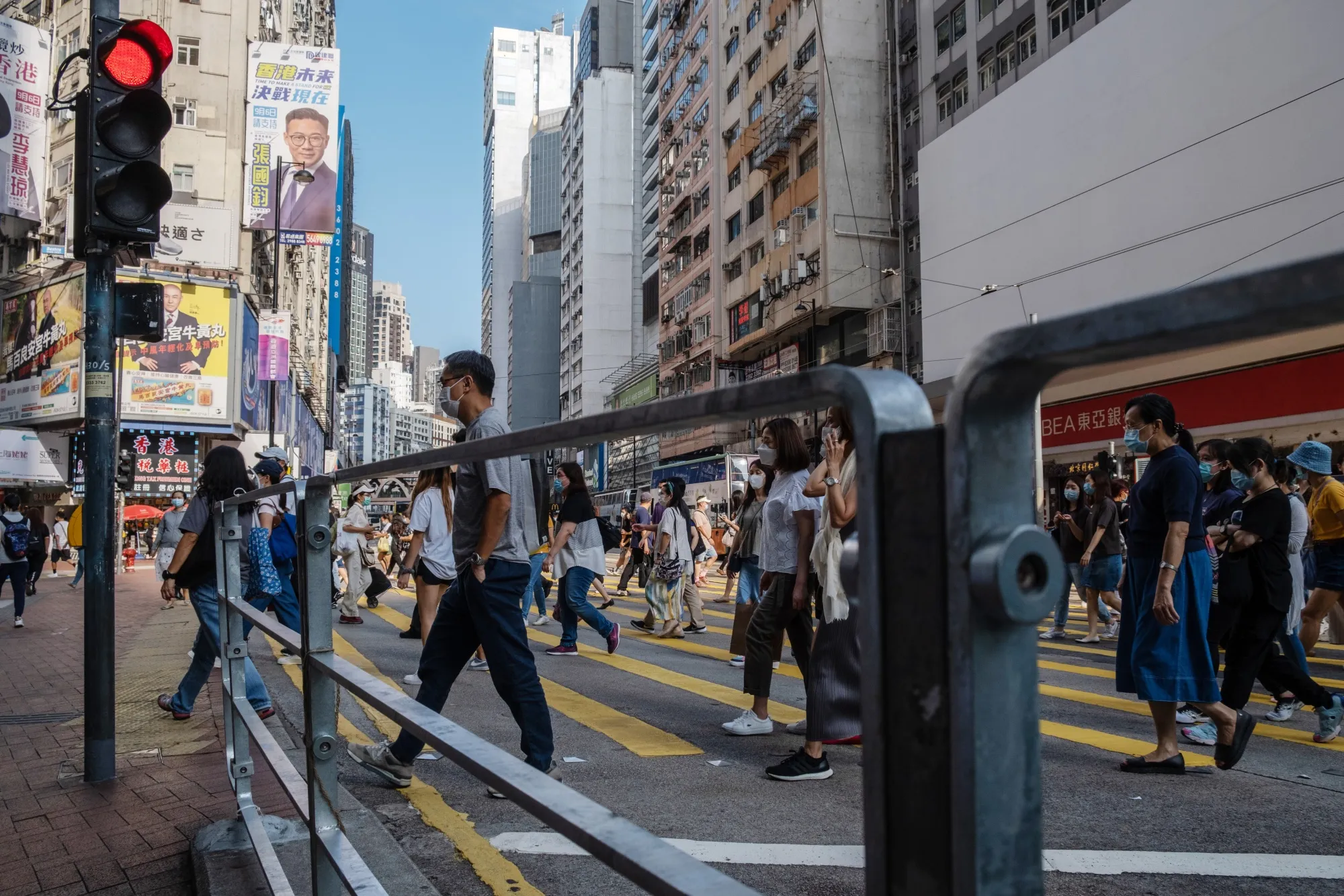 摄影师:瓦妮莎·勒罗伊/彭博社香港的行人围栏无处不在。这些长长的灰色金属障碍物环绕着这个高度密集城市的各个街道,从九龙繁忙的商业走廊到中环的金融区,再到中国官方联络办公室周围的西营盘地区。