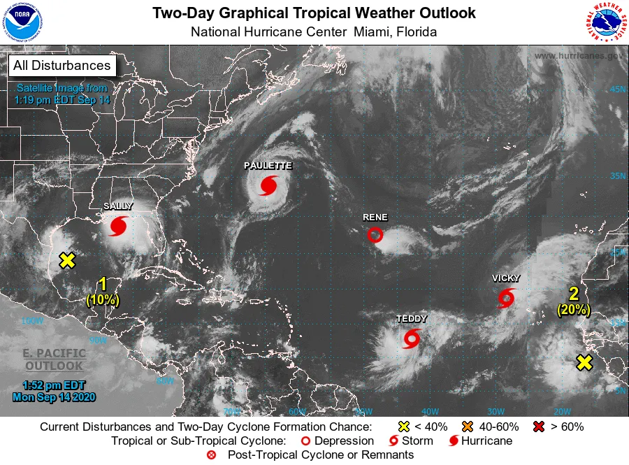 飓风萨莉将于周一晚间开始袭击美国墨西哥湾沿岸,带来洪水和降雨,可能在第二天在新奥尔良和阿拉巴马州的莫比尔之间登陆,造成高达30亿美元的损失。萨莉迅速增强为1级飓风,可能达到每小时105英里,这将使其成为2级飓风。还有其他几场风暴正在酝酿中。