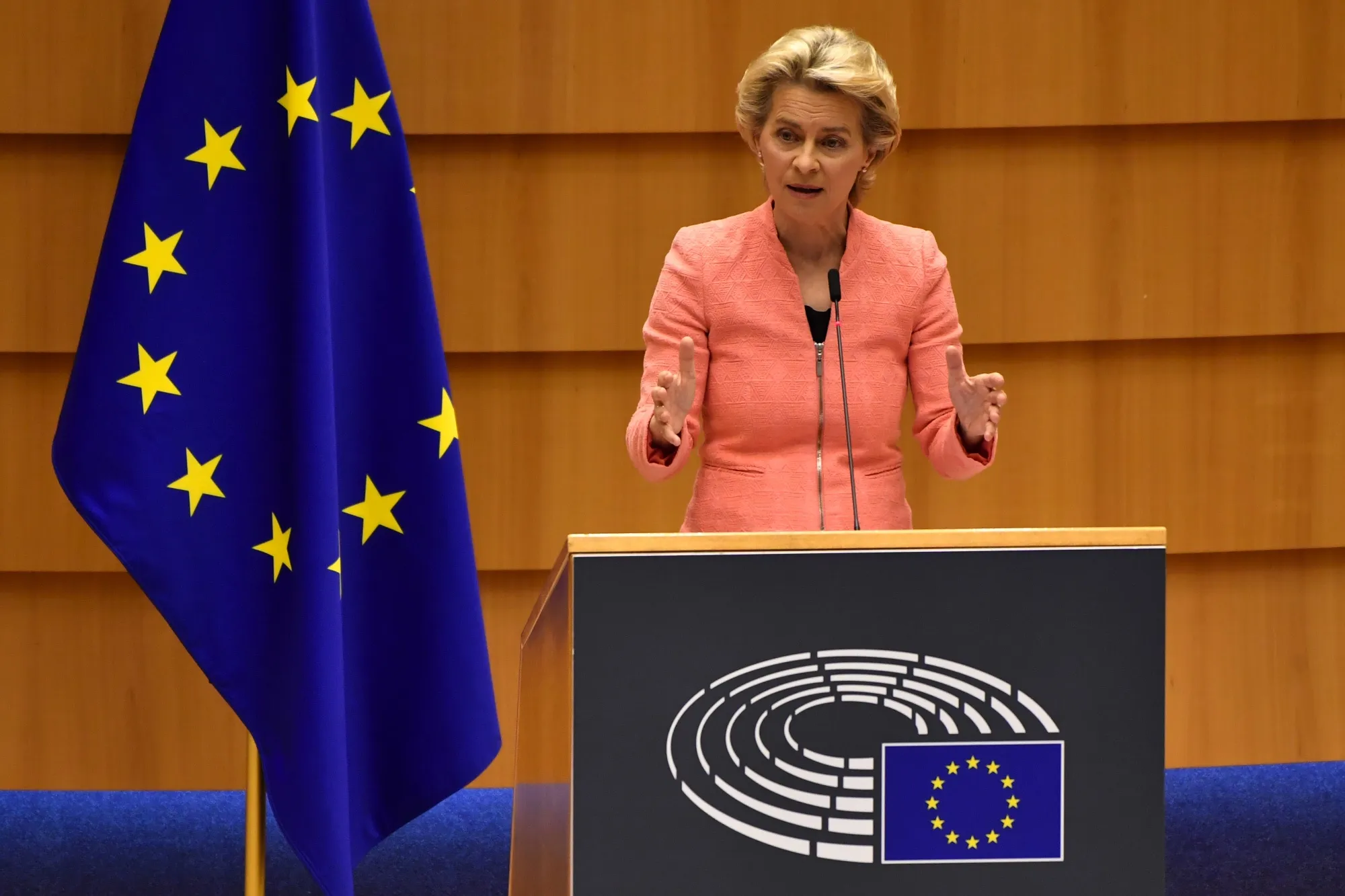 乌尔苏拉·冯德莱恩于9月16日在布鲁塞尔发表讲话。