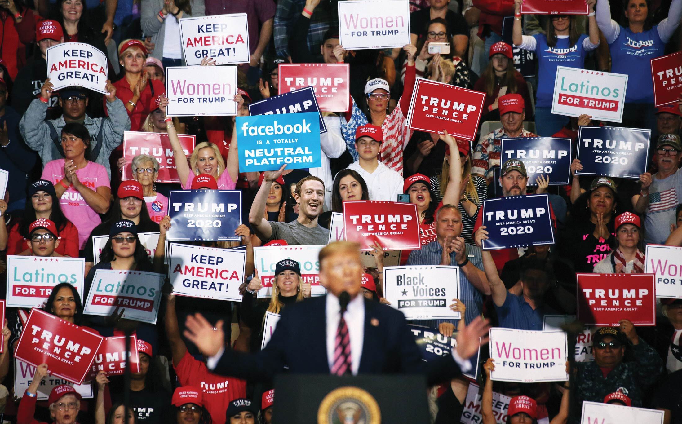 摄影师:James MacDonald/Bloomberg在2019年底,马克·扎克伯格在华盛顿进行众多旅行之一,以在国会面前为Facebook辩护时,他与唐纳德·特朗普进行了私人晚餐,并向总统提供了一个令人兴奋的统计数据。“我想祝贺你,”扎克伯格说。“你在Facebook上是第一。”