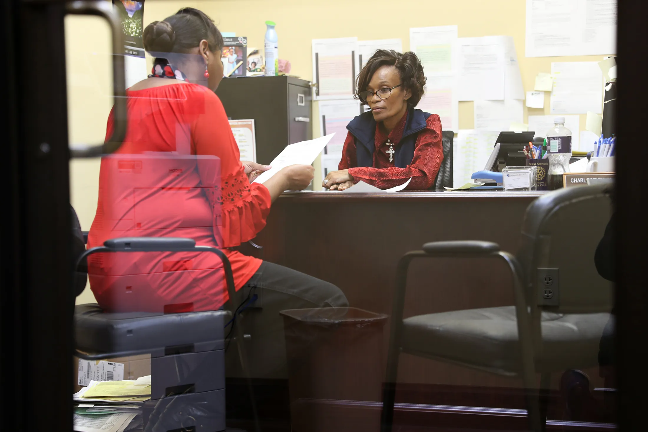 南方银行信用顾问查尔斯廷·哈里斯在克拉克斯代尔工作,疫情前。摄影师:瑞秋·博伊洛特,彭博商业周刊在三角洲地区,联邦政府发放的1200美元刺激支票(家庭2400美元,每个16岁或以下的孩子500美元)帮助人们在封锁初期维持生计。没有银行账户的人通过邮件收到支票的时间要长几周。刺激支票对发薪日贷款公司、支票兑现公司和其他收取现金费用的人也是一大好处——通常为3%到5%,但在某些情况下高达10%。从四月中旬到五月中旬,南方银行对客户和非客户都免除了兑现4620张总价值超过750万美元的刺激支票的费用。威廉姆斯表示,他希望刺激立法能禁止收取费用。“这些事情应该在一开始就考虑到,”他说。“这只是显示了我们服务的社区是多么常被遗忘。”