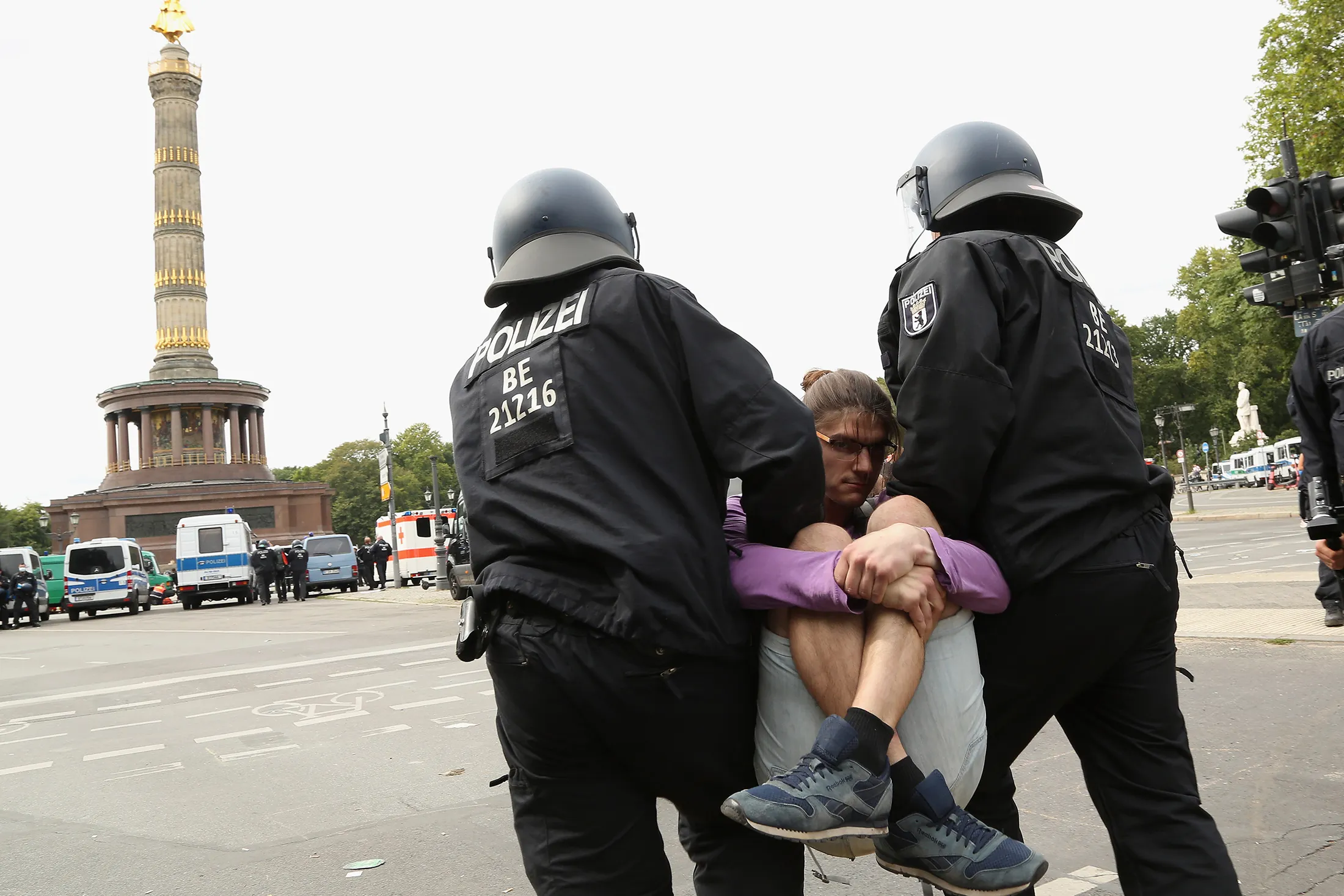 警察在8月30日柏林针对政府病毒规定的示威中带走了一名抗议者。摄影师:亚当·贝瑞/法新社通过Getty Images告诉我们我们做得如何或我们缺少什么,发送至[email protected]。