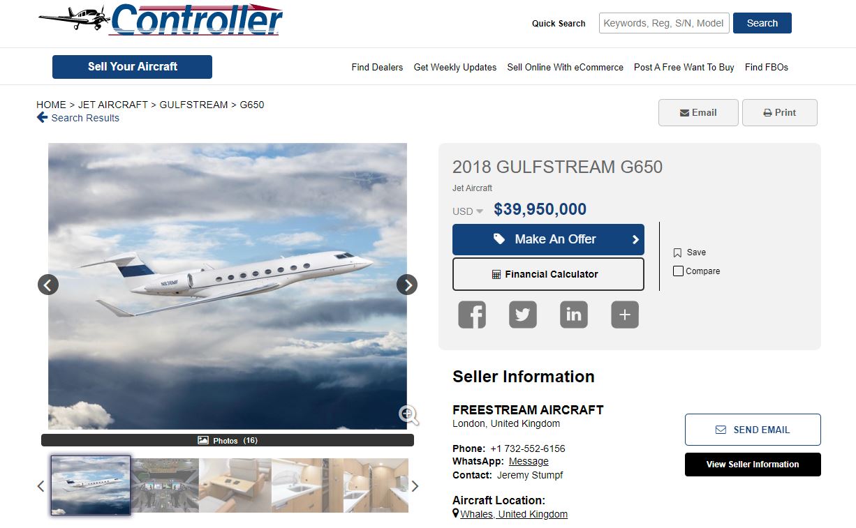 2018 GULFSTREAM G650 出售来源:Controller.com