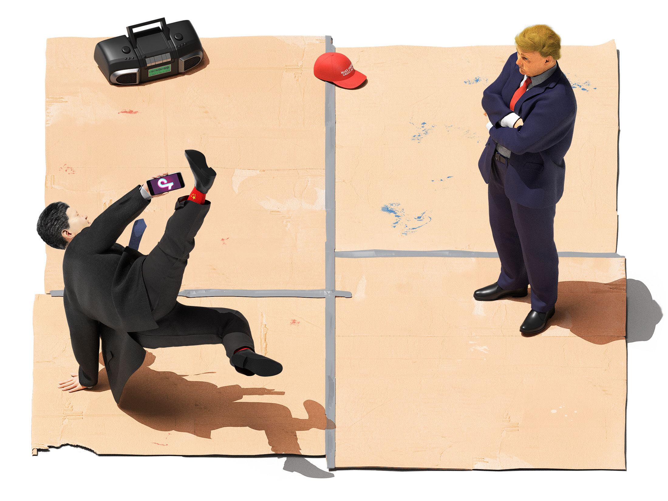 插图:Baptiste Virot 为《彭博商业周刊》创作在美国与北京之间关于 TikTok 的数月僵局中,中国已成为明显的赢家。