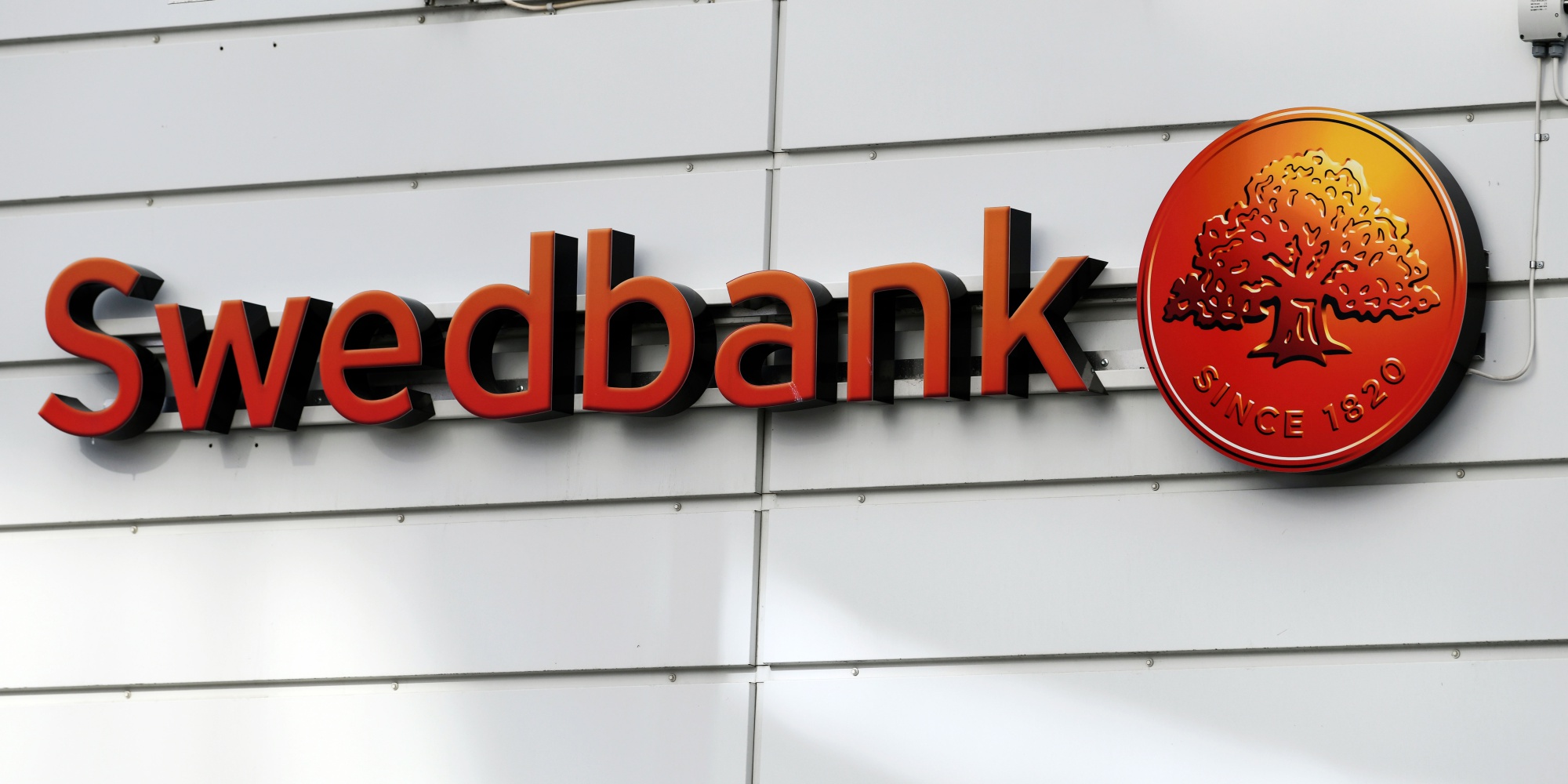 瑞典桑德比贝格的Swedbank AB总部外部有一个标志,拍摄于2019年3月5日,星期二。