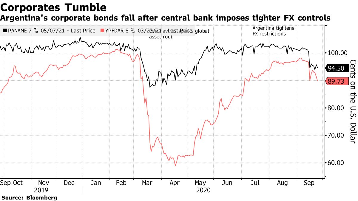 最让债券投资者担忧的新规则是,要求从现在起到三月,每月欠款超过100万美元的公司必须推迟其义务,否则将无法以官方汇率购买美元。官员们估计,这些限制将适用于33亿美元的债务,导致企业债券大幅抛售,特别是未来六个月到期的票据受到严重打击。