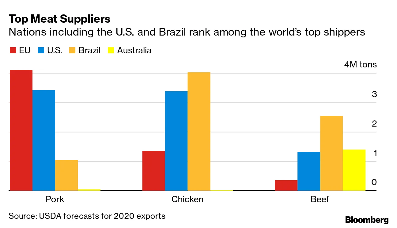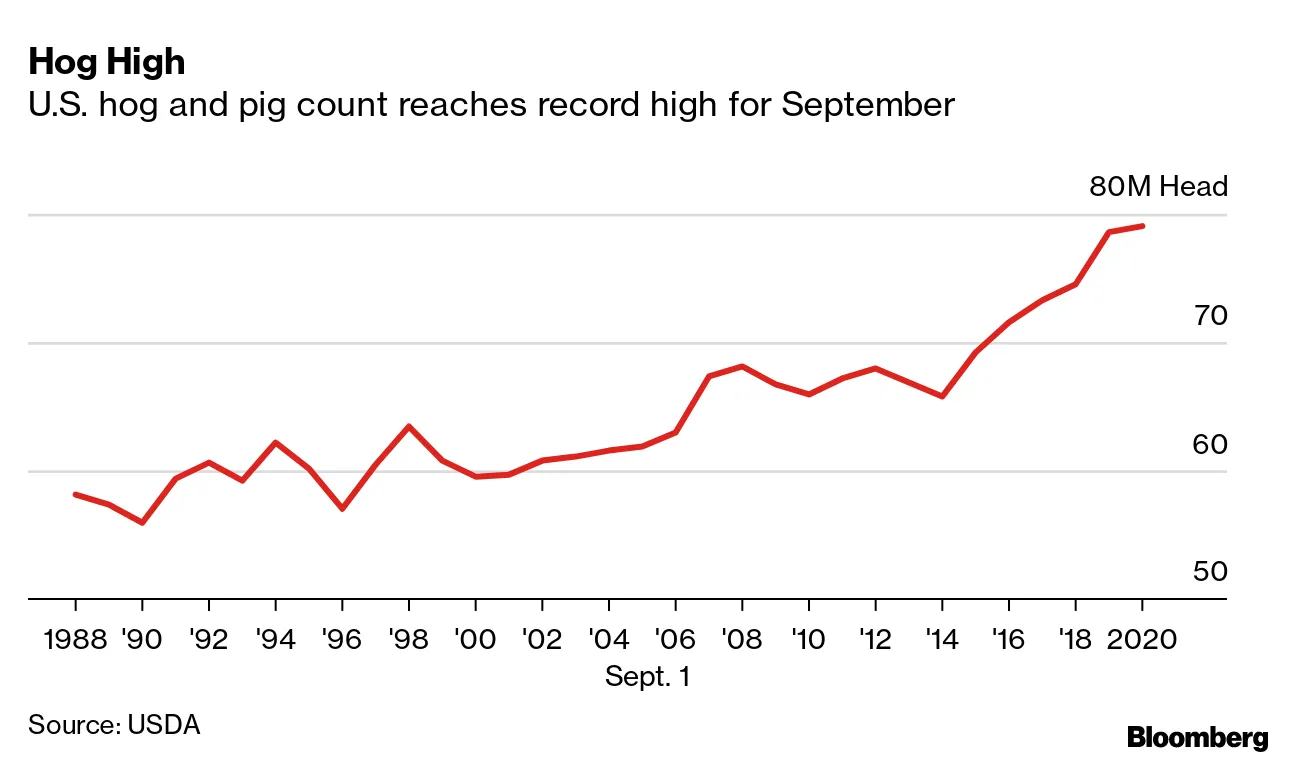 在需求方面,猪肉也有一些积极的迹象。根据美国农业部的数据,切成培根的猪肉肚供应在8月份比去年下降了33%。与此同时,由于非洲猪瘟病毒, 中国购买了创纪录数量的美国猪肉。