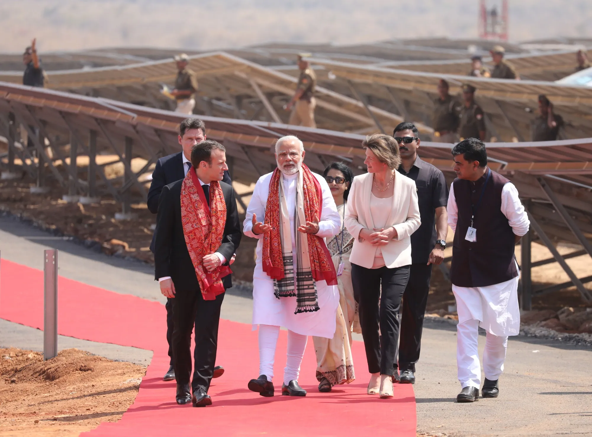 印度总理纳伦德拉·莫迪(中)在2018年太阳能发电厂开幕式上与法国总统埃马纽埃尔·马克龙和安吉集团总经理伊莎贝尔·科谢交谈。摄影师:卢多维克·马林/法新社通过Getty Images印度“将气候变化视为一个可以简单地说是地缘政治上获胜的领域,”印度能源与资源研究所的托马斯·斯宾塞表示。在总理纳伦德拉·莫迪的领导下,印度在低成本太阳能安装方面创下了纪录,并成为实施能源效率措施的榜样,尽管它在电气化交通方面仍缺乏强有力的政策。