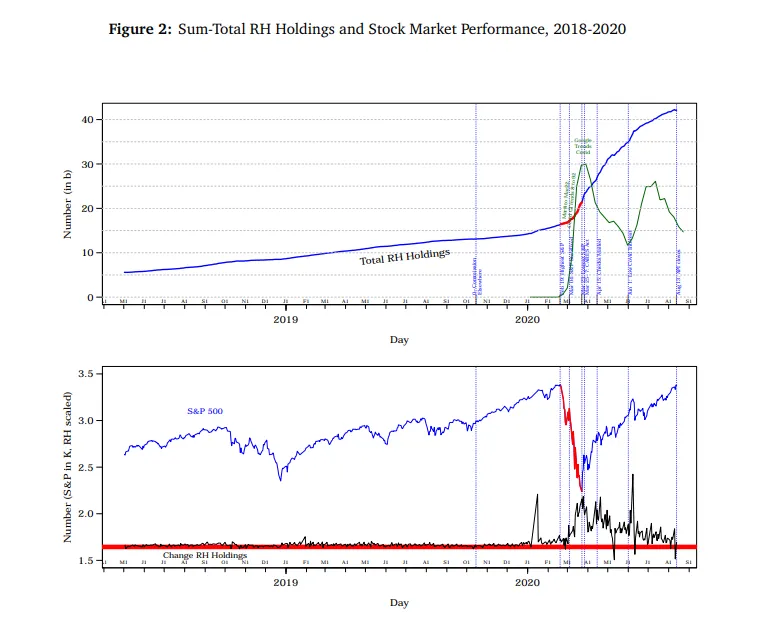 Welch的研究还表明,模型Robinhood股票投资组合在今年表现优于市场,个人投资者的存在可能在2020年这个动荡的年份中起到了平抑市场的作用。每当股市下跌时,零售购买的激增通常会在第二天就出现。然后,在大市场震荡后大约三天,股权购买通常会再次激增,这大约是完成现金银行转账所需的时间,Welch表示。