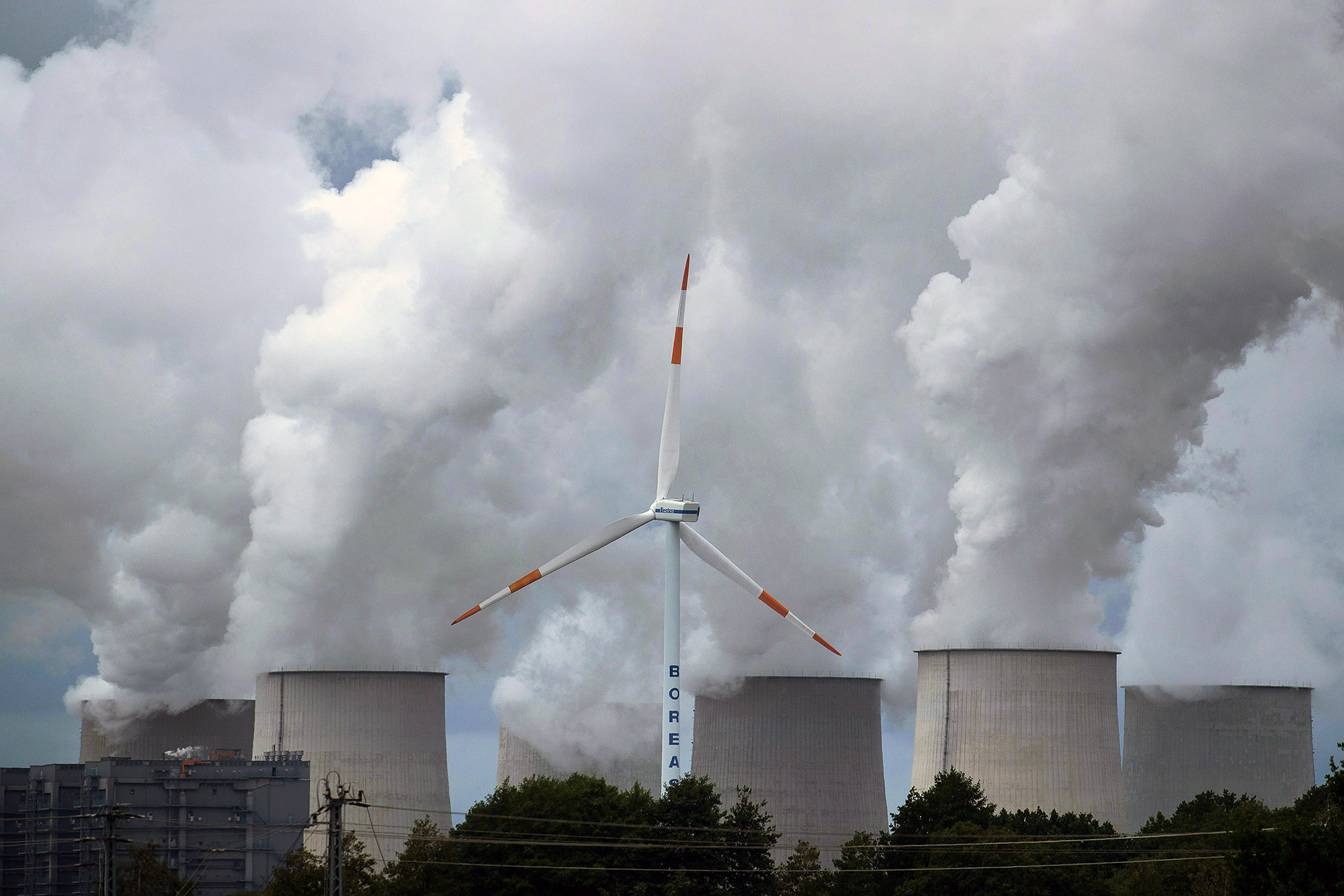 蒸汽排放从德国巴伦布吕克的贾恩施瓦尔德褐煤发电厂升起。