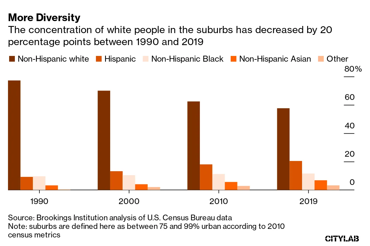 “郊区”是一个广泛的美国类别,包括美国大多数人口。截至2010年,它们也包含每个人口群体的多数。从这个意义上说,郊区确实是多样的。但正如布鲁金斯非驻留高级研究员伊丽莎白·尼博恩所写的,“他们并不生活在同样的郊区。”在被模糊定义为郊区的广阔美国土地中,种族和民族群体仍然保持分离。