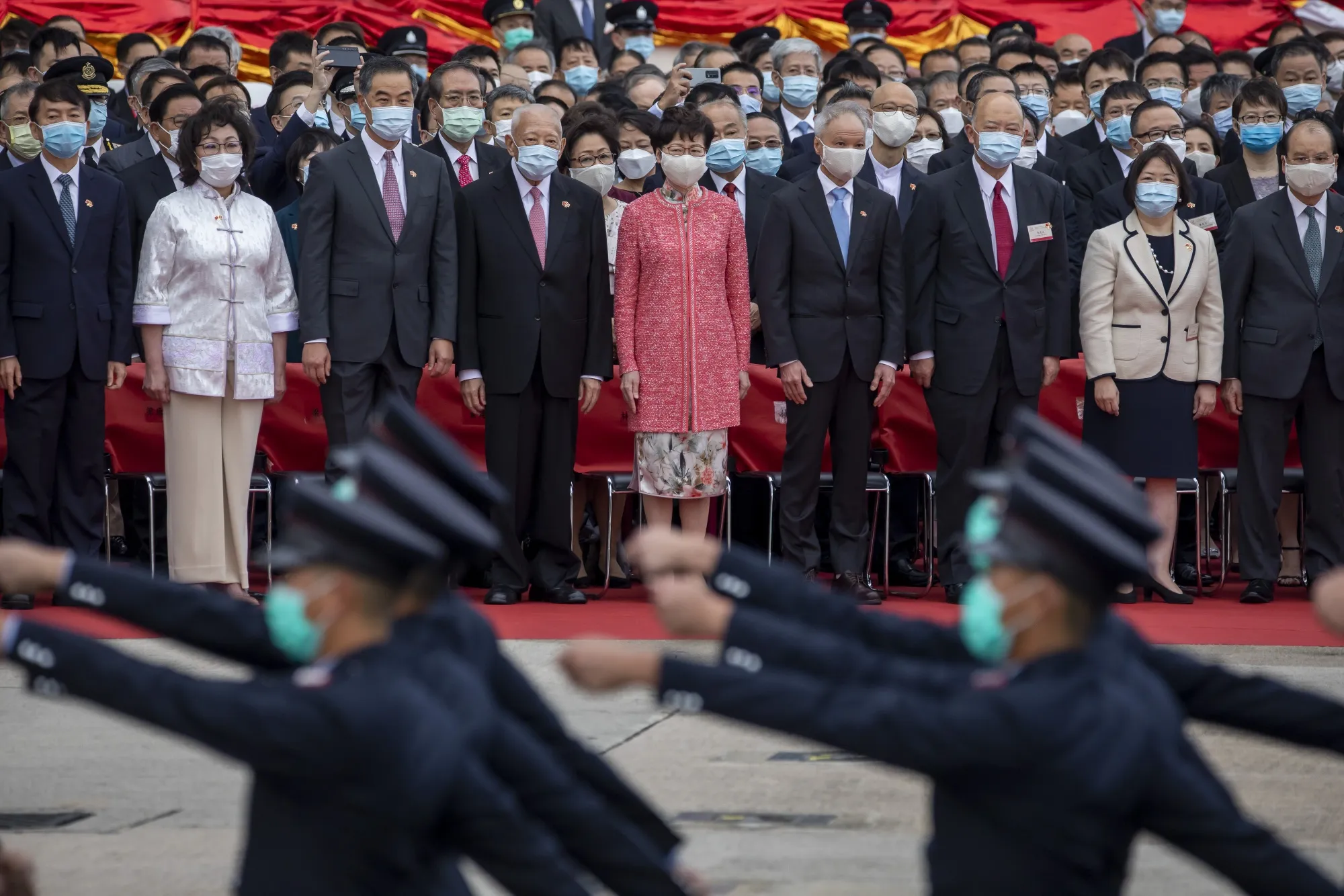 林郑月娥和其他贵宾出席今天的升旗仪式。摄影师:保罗·杨/彭博社告诉我们我们做得如何或我们缺少什么,发送至[email protected]。