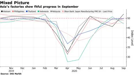 PMI跟随了区域复苏的更多希望迹象,周四的另一份报告显示韩国的出口自疫情以来首次增长,而周三来自中国的数据显示经济活动进一步加速。