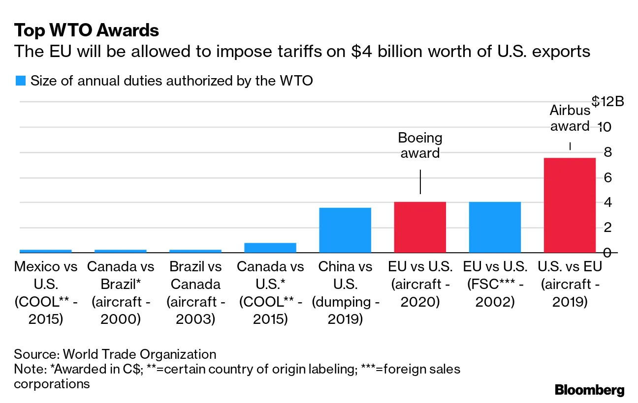 这场 跨大西洋贸易冲突 暂时没有缓和的迹象,世界贸易组织的裁决意味着新一轮的报复性关税可能会危及美国和欧盟的初步经济复苏。现在的关键问题是,欧盟是会迅速采取行动对美国征收关税,还是等待11月3日选举的结果。