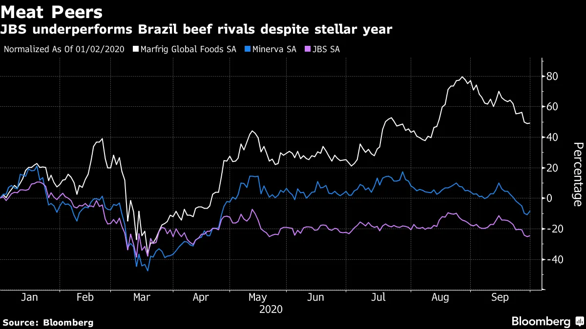 “股票表现是社会的赞赏,”JBS首席执行官吉尔伯托·托马佐尼在上周的一次采访中说道。“但我们不是一个关注短期表现的私募股权基金。这并没有影响我的睡眠,因为我们正在尽一切努力确保公司的长期可持续性。我们关注大局,我们想要建立一些真实的东西。”