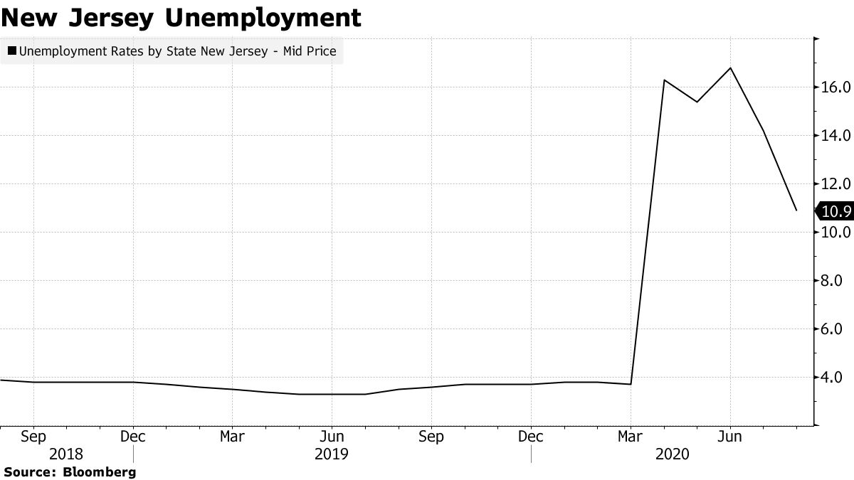63岁的默菲在3月新冠病毒袭击时封锁了新泽西州。根据实验室测试和可能的关联,已有超过16,000名居民因病毒死亡。失业率从当月的3.7%跃升至4月的16.3%。截至8月,失业率为10.9%。