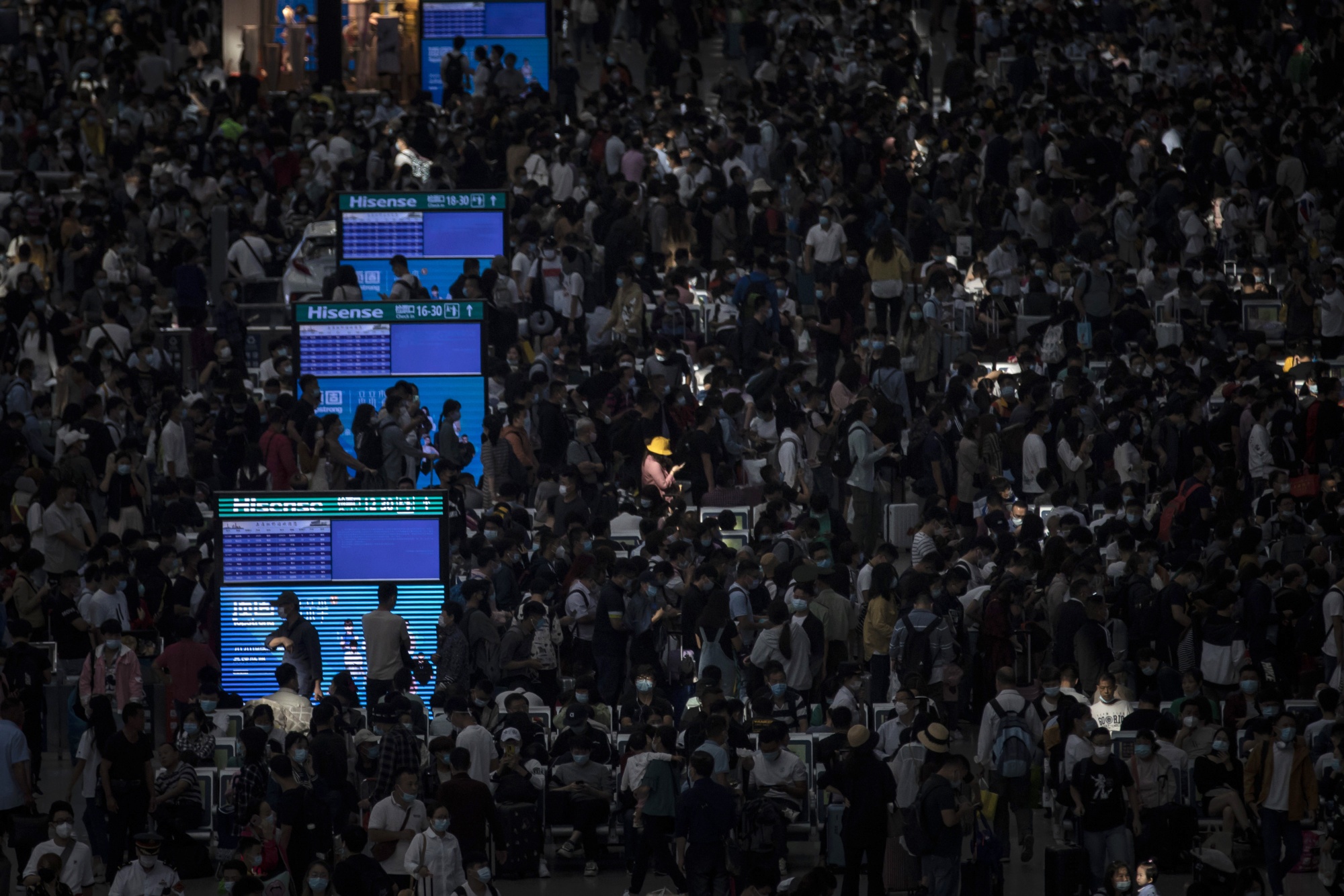 乘客在中国上海虹桥高铁站的候机大厅等候,时间是9月30日。