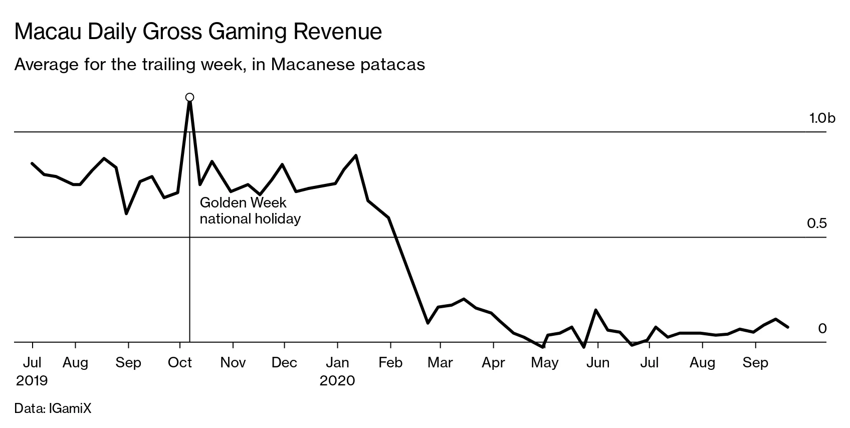 澳门是中国唯一合法赌博的地区,通常在黄金周期间游客激增,甚至使其人口翻倍。今年,这座城市的赌场 预计将迎来更少的游客,最乐观的预测是黄金周将仅带来2019年100万游客的一半。