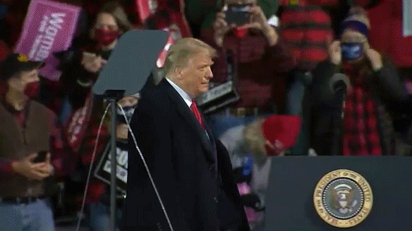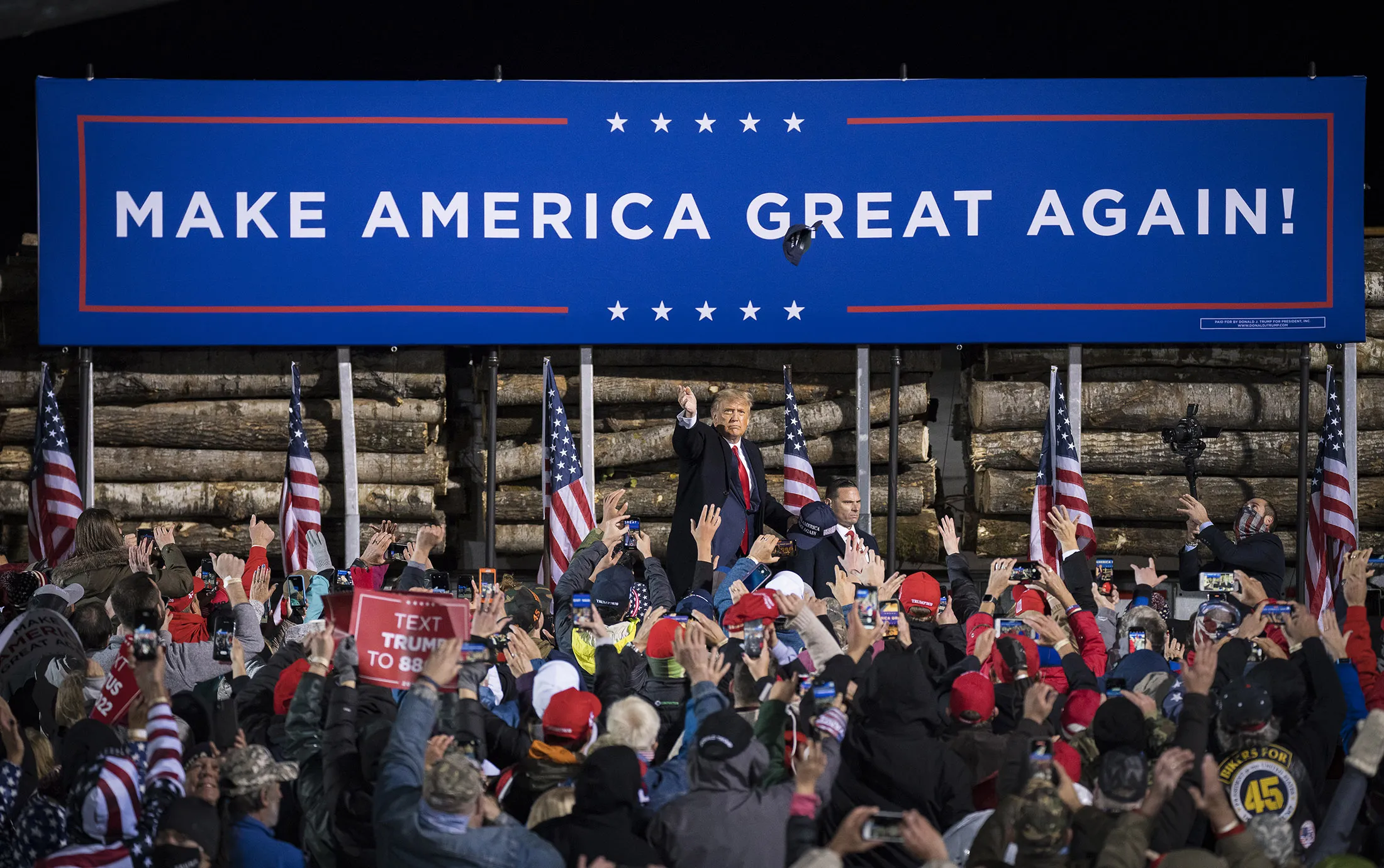特朗普总统于9月30日抵达明尼苏达州杜鲁斯的“让美国再次伟大”集会。来源:美联社数千人 欢呼 特朗普,在明尼苏达州杜鲁斯的一个机场机库内的竞选集会上,随着他走上舞台高喊“美国!美国!美国!”并在总统提到天气寒冷多风时大笑。