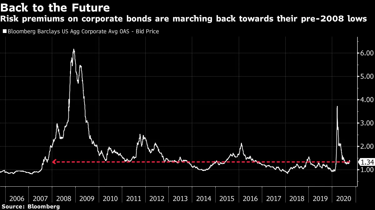 新企业债务的销售达到了创纪录的高位,因为公司利用较低的借贷成本。杠杆收购和并购交易层出不穷。与此同时,金融结构的全盛时期可以追溯到2008年金融危机之前,正在享受复苏。彭博社上周报道,Cerberus Capital Management正在出售一批商业抵押贷款,这在所有意图和目的上,非常像CDO——这是在上一个信贷周期高峰期大量涌现的证券化字母汤的一部分。这种行为通常会让普通的金融评论员宣称“这是顶峰”。但当然,如果2020年我们学到了一件事,那就是没有什么是正常的。