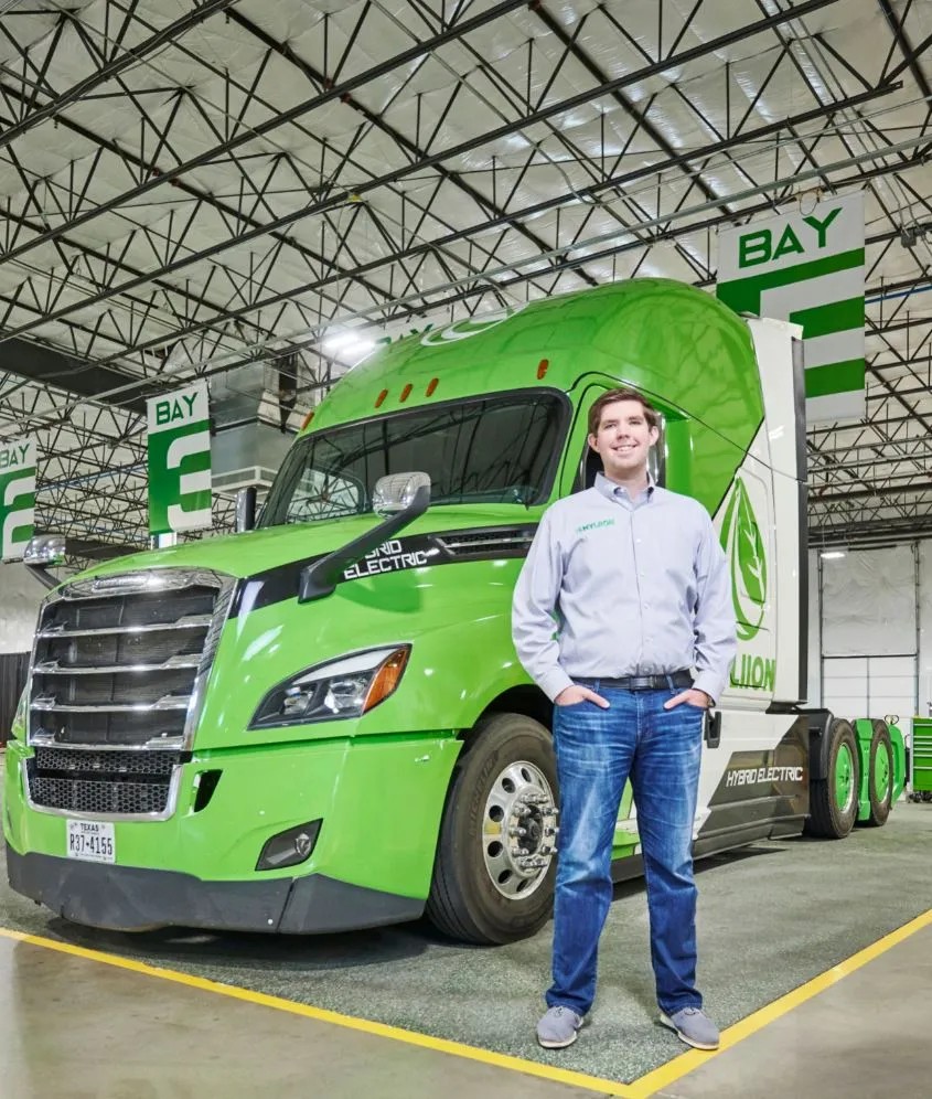 我从小就喜欢赛车。我在赛道上花了大量时间驾驶车辆。我们的设备是通过拖车运输的,所以我通过这个了解了卡车。然后当我在大学学习机械工程时,我对电动车产生了兴趣。那时特斯拉刚开始为人所知,我想:为什么我们在汽车中有电动技术,而在卡车中还没有,因为卡车是可以产生最大影响的地方?它们每年行驶10万英里,仍然会产生大量温室气体。所以我想到的是,让我们把这个大趋势——向电气化的转变——应用到这个行业中。