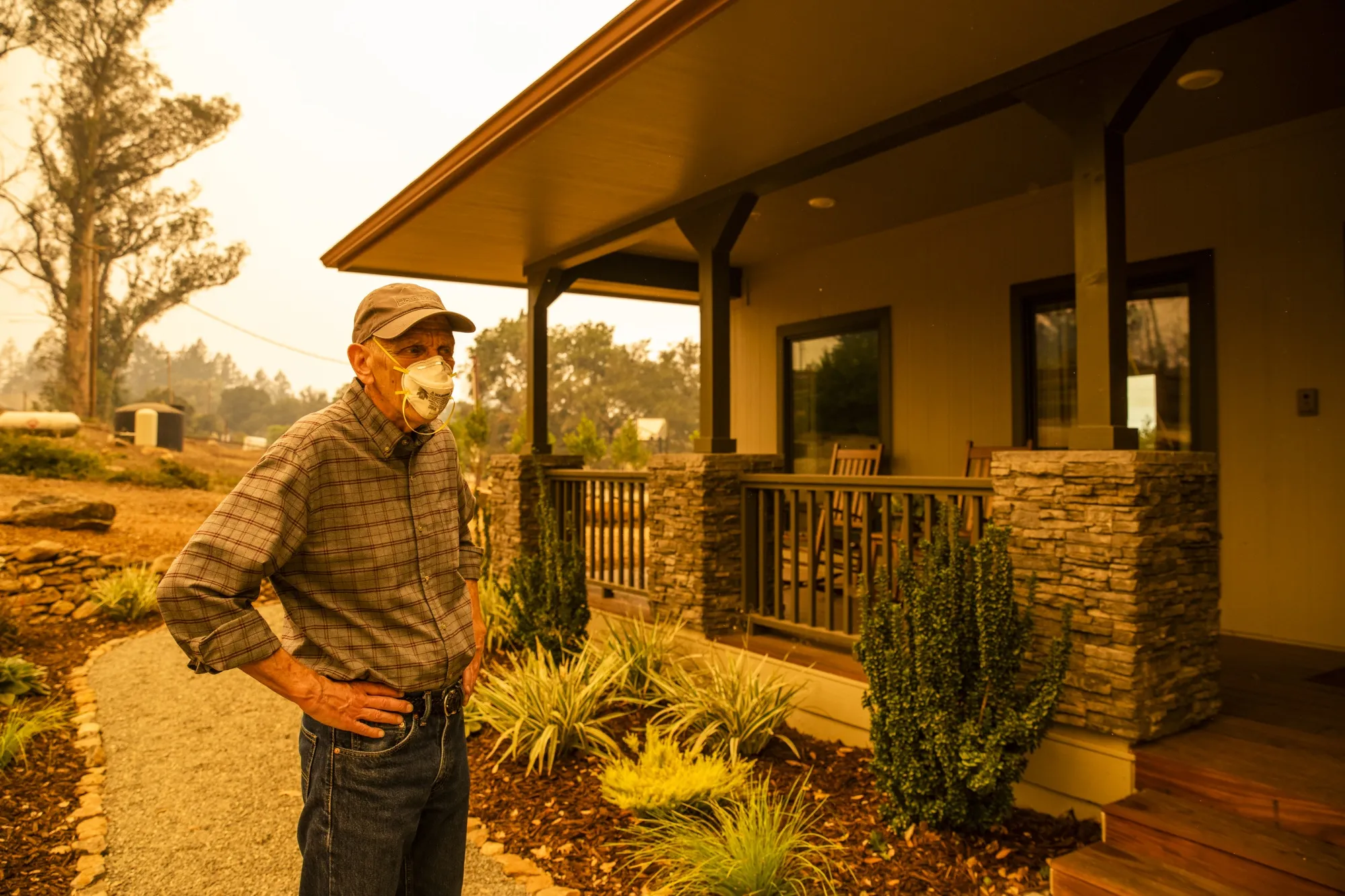 “很多人因为我们生活的环境而离开加利福尼亚,”他说,在九月一个越来越少见的蓝天下午,指着天空。“野火将会伴随我们。我是说,这必须是你考虑的事情。”