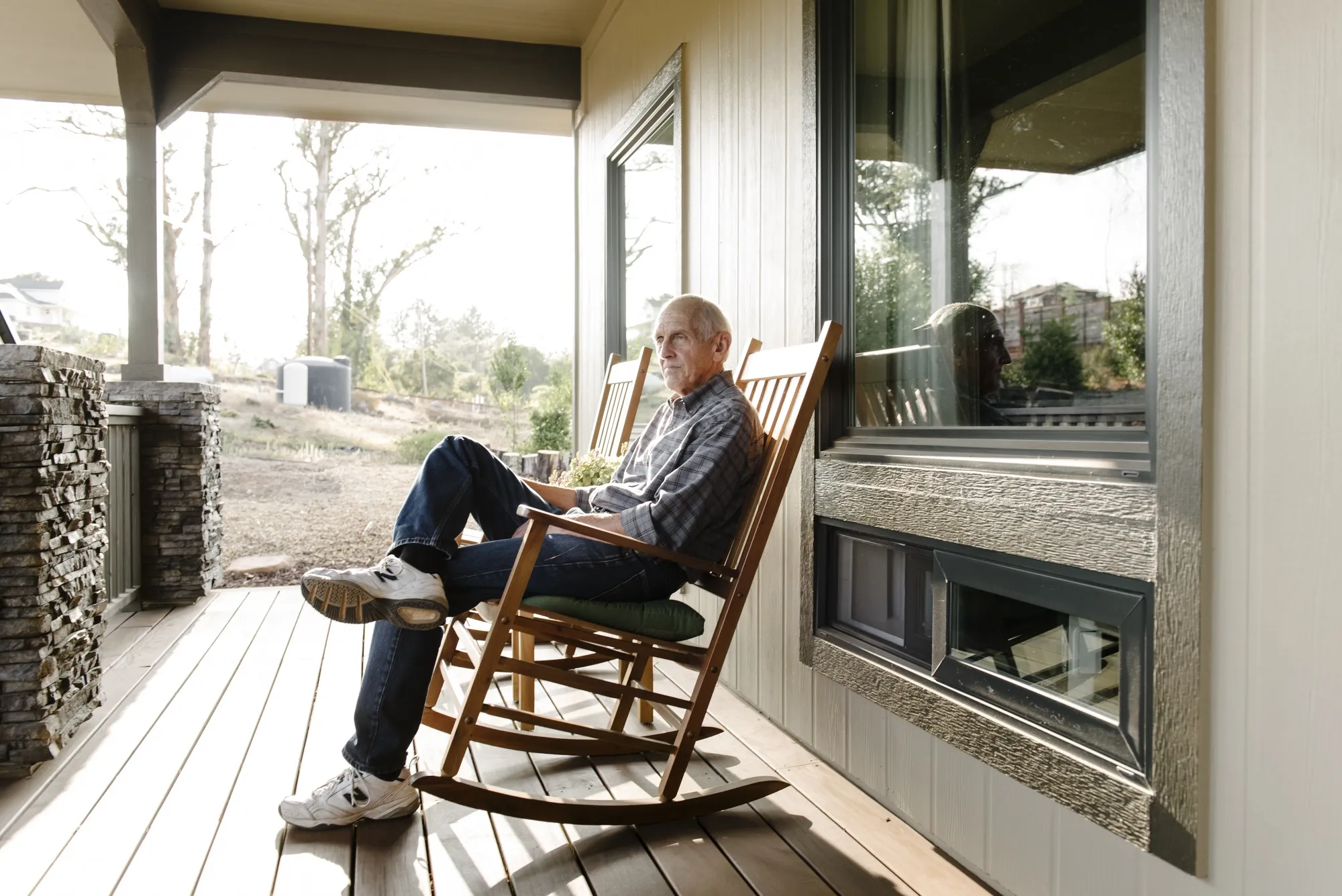 Hicks于9月16日坐在他位于圣罗莎的家门廊上。摄影师:Michael Short/Bloomberg理查德·希克斯(Richard Hicks)在一年前搬进了Homebound为他重建的位于圣罗莎的房子,住在一个保险不足的邻居旁边。因此,他的新三卧室、两浴室的家的视野是一个空地,里面有一个排水的游泳池和一个废弃的篮球场。