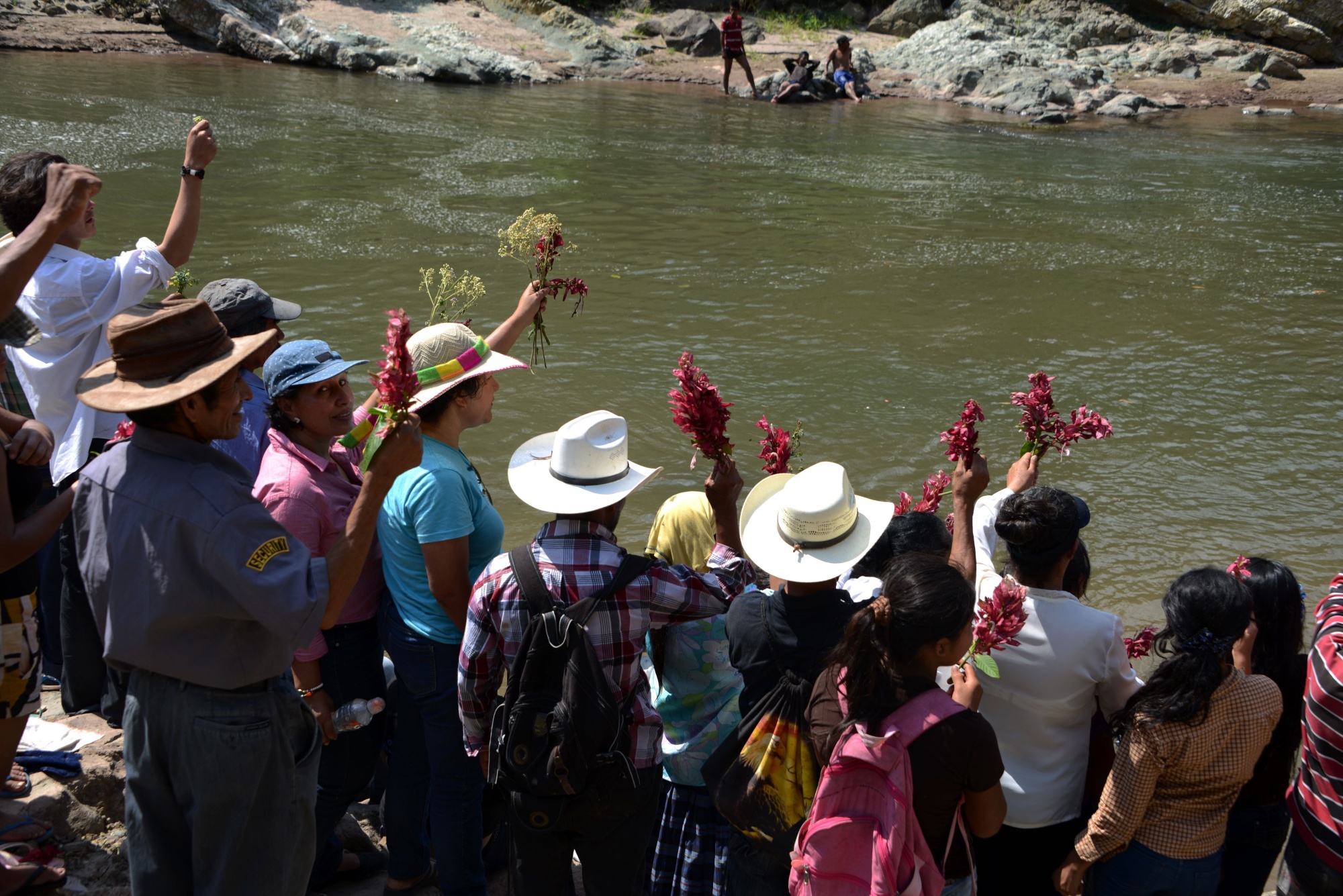 人们在洪都拉斯的瓜尔卡尔克河上以宗教仪式纪念已故环保主义者贝尔塔·卡塞雷斯,时间是2016年3月27日。摄影师:奥兰多·西埃拉/法新社通过Getty Images