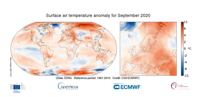 彭博社在9月份,气温比30年历史平均值高出0.63摄氏度(1.15华氏度),西伯利亚北极和东南欧尤其感受到气候变化的升温影响。北极海冰在9月份达到了第二低的范围,自1979年卫星开始监测冰层以来,持续快速下降。