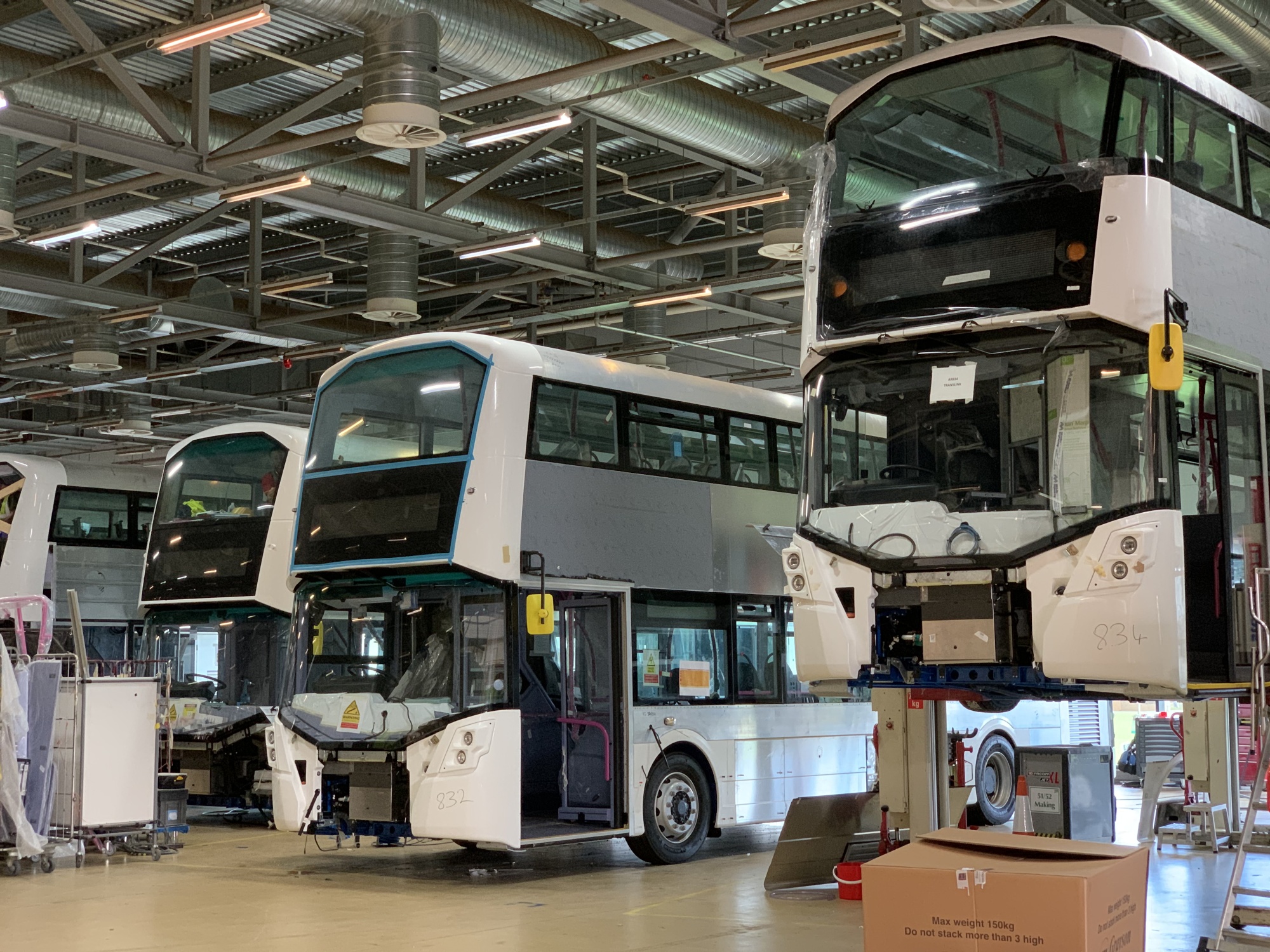 赖特巴斯氢气公交车在生产线上世界上第一批双层氢气公交车将于周三抵达苏格兰的阿伯丁,这座城市以一些世界顶级石油公司的基地而闻名。