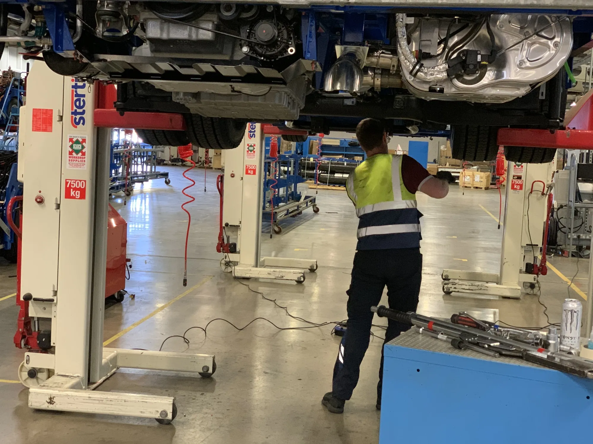 一名机械师正在维修Wrightbus氢气车辆