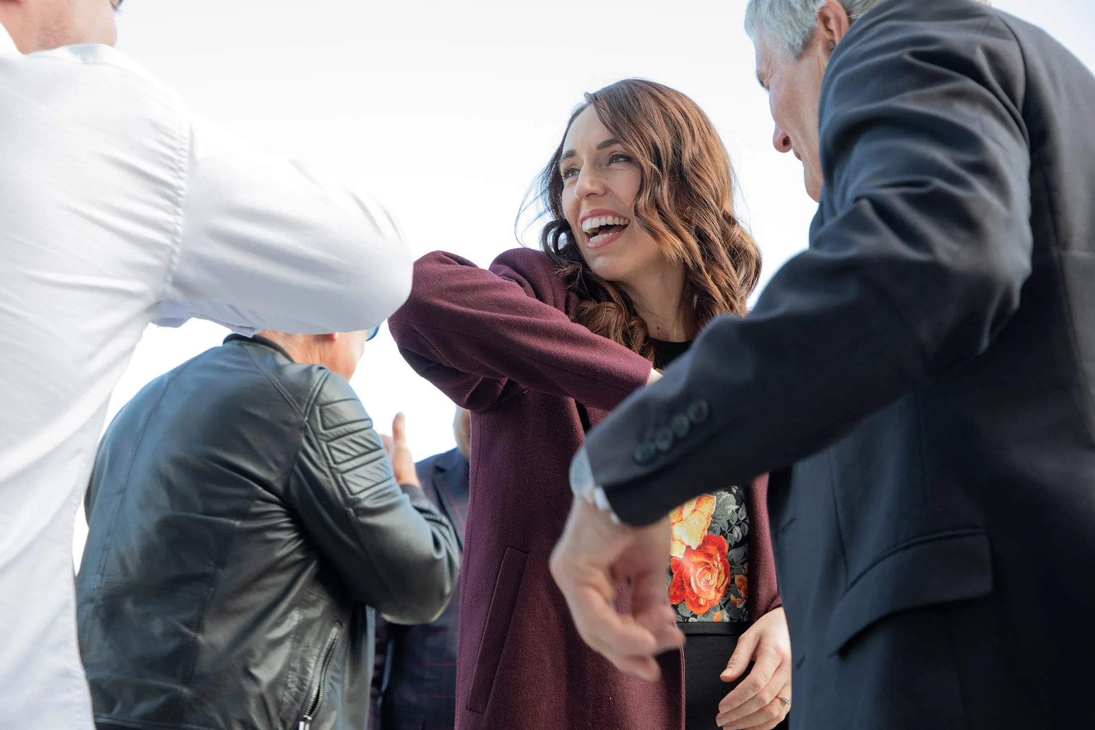 阿德恩与一位支持者碰肘。摄影师:萨拉·奥尔梅为《彭博商业周刊》拍摄反对派国家党正通过减税来吸引选民,并攻击阿德恩未能兑现她的承诺。但到目前为止,这并没有影响总理的受欢迎程度。