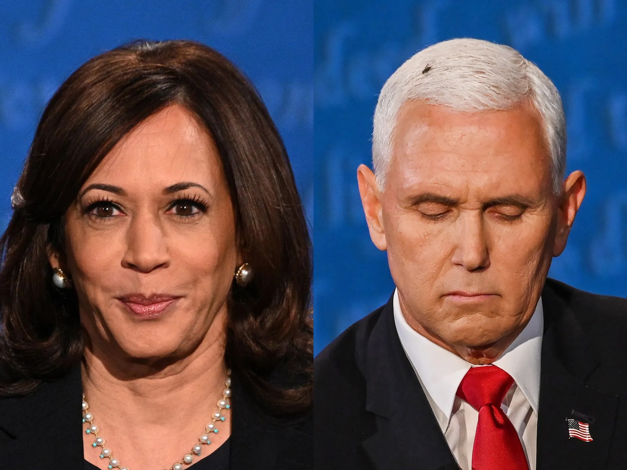 哈里斯和彭斯在昨晚的辩论中。摄影师:埃里克·巴拉达/法新社*副总统辩论如此文明,以至于最意外的时刻是**一只苍蝇落在了彭斯的头上。*拜登转发了一张他拿着苍蝇拍的照片,呼吁支持者“捐出5美元来帮助这个竞选活动飞起来。”