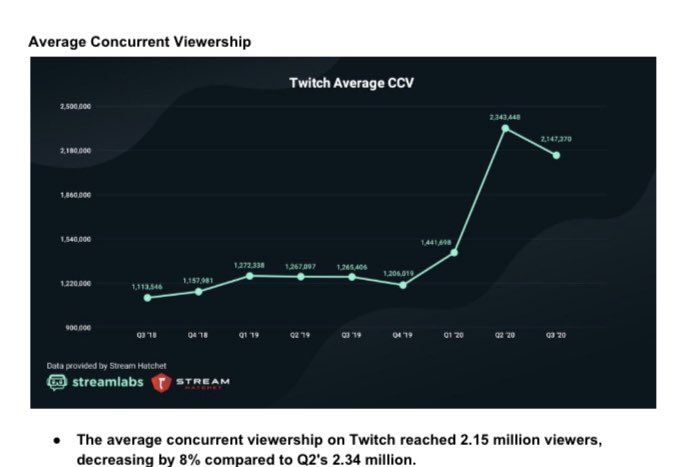 每时每刻都有大约270万人在Twitch上直播。这比美国除了四家有线电视网络外的所有网络都要多,尽管这是一个全球数字。