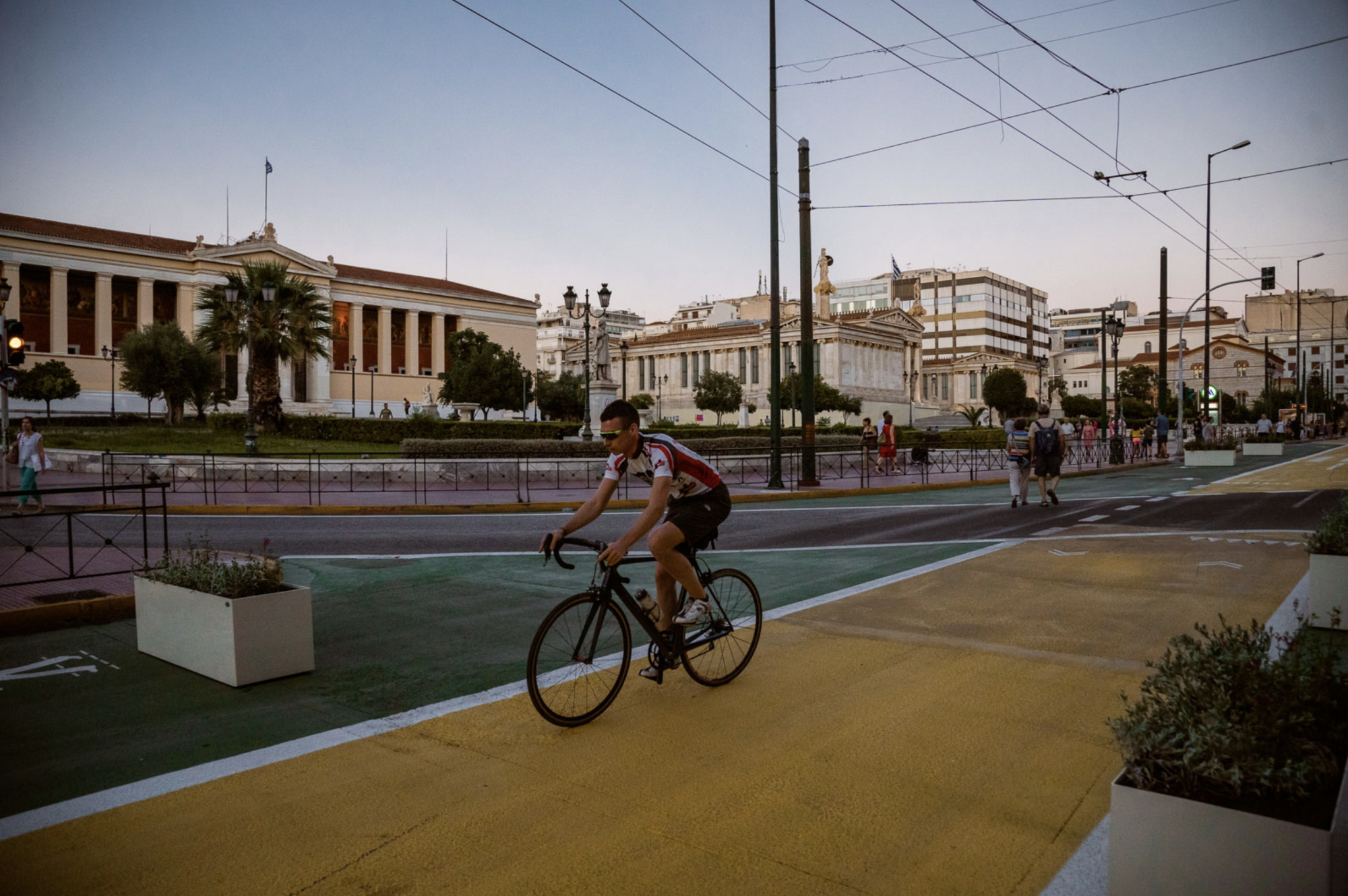 “大步行”的新自行车道对骑车者来说是一大福音,但未能控制雅典的交通。它们的未来尚未确定。照片由雅典市提供该市承诺会有很大的改善。“雅典将停止将其巨大的文化财富隐藏在灰色的街道和混凝土后面,”该项目的宣传公告称。“市民和游客将从第一天开始看到并体验该项目带来的积极变化。”