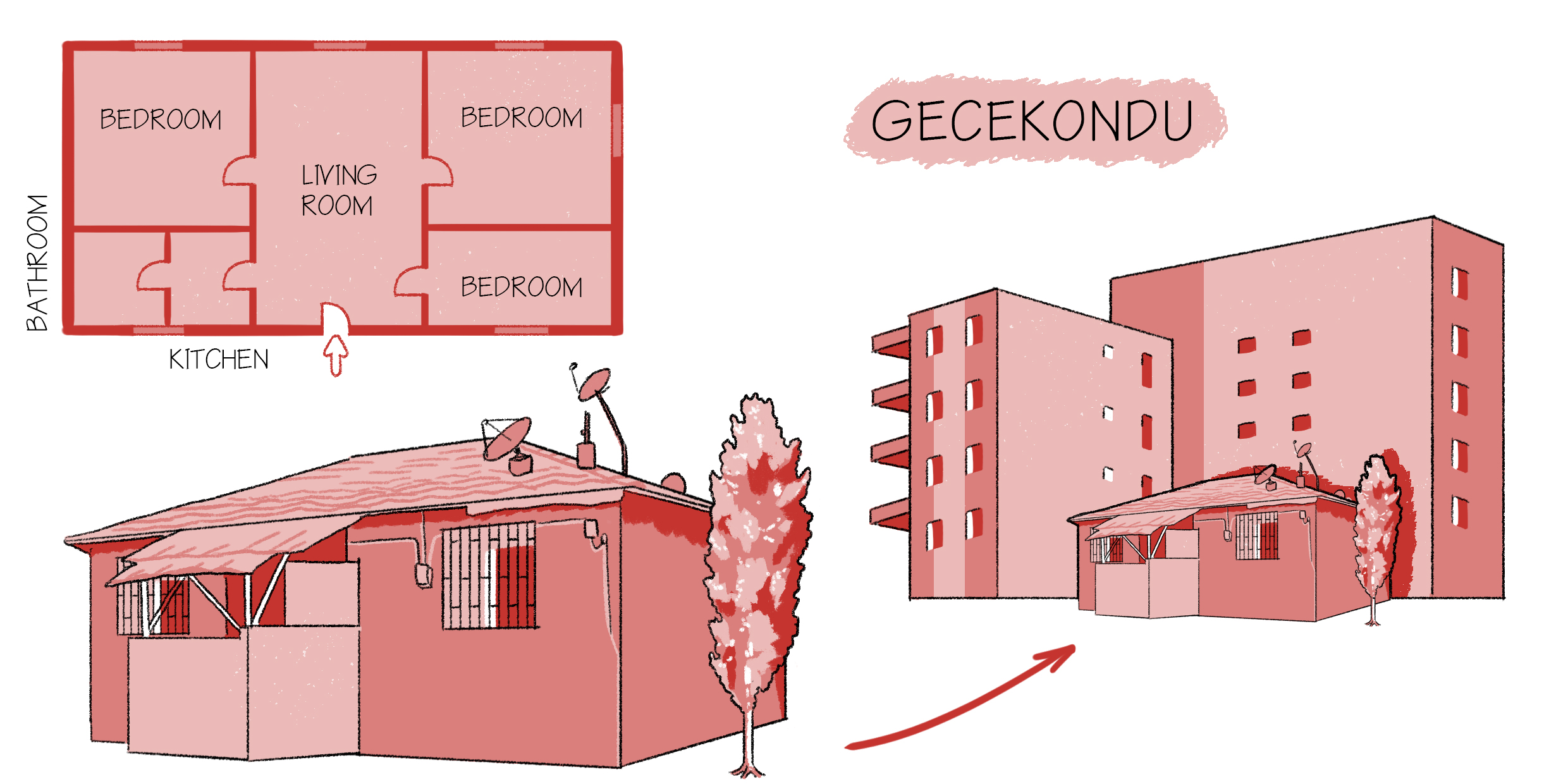 对于低收入移民来说,这通常意味着建造后来被称为gecekondu的房屋,通常是在已经有移民从他们家乡来的地区。