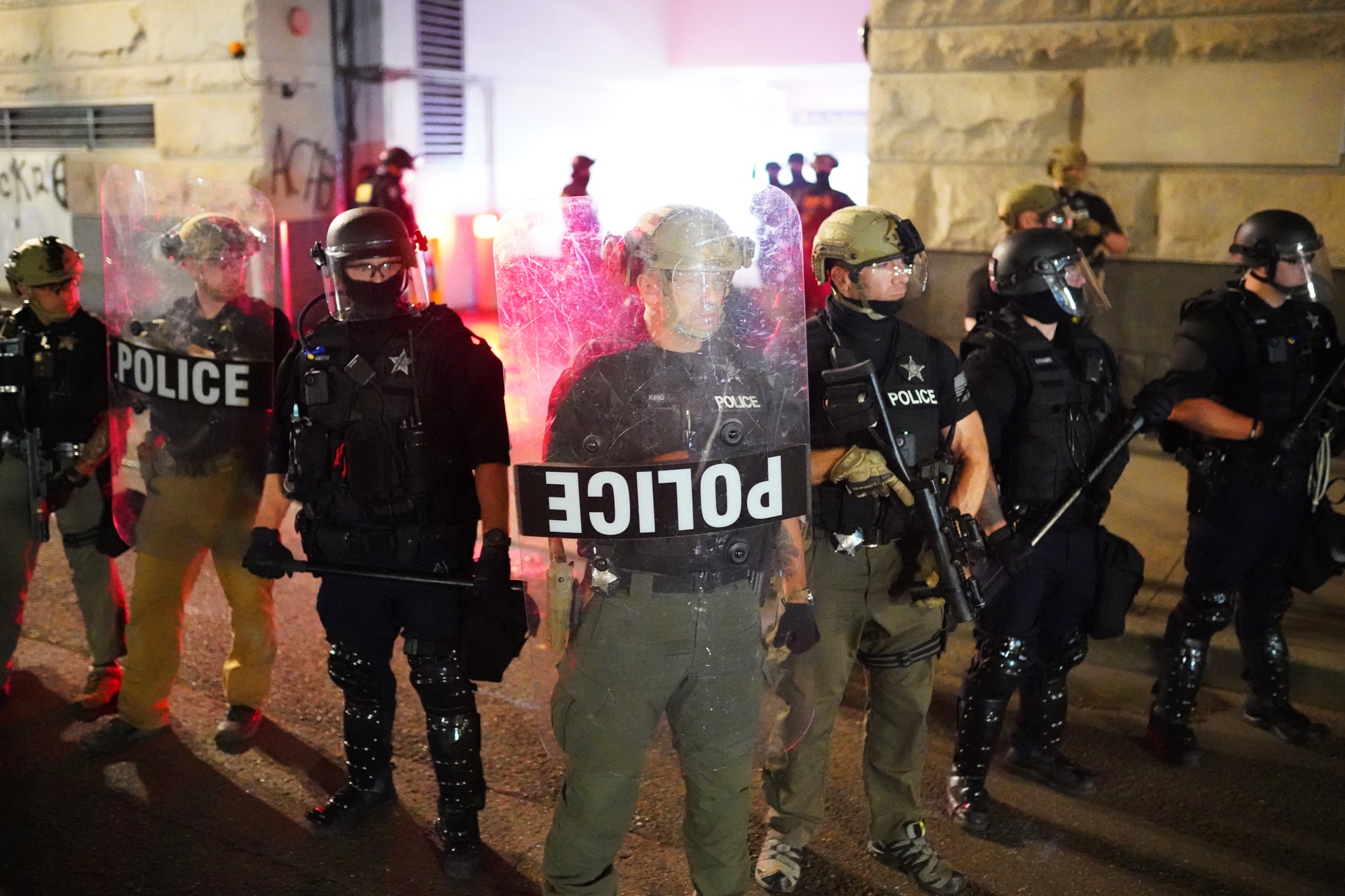 这份诉状以两种最近的联邦干预行动为主题。第一种是在城市部署联邦官员。今年夏天,被列为诉讼被告的代理美国国土安全部部长查德·沃尔夫下令联邦官员前往波特兰,表面上是为了平息数周来一直有暴力迹象的骚乱。这些特工——其中一些是专门接受过在伊拉克和阿富汗等地执行对毒贩的战术突袭和边境监视的训练——却引起了警报和批评,人们认为他们正在加剧事态,采取了极具争议性的行动,比如将个人抓走并带入未标记的面包车中。