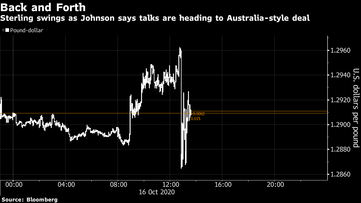 英镑在周五的消息中波动,在约翰逊发表讲话前上涨,然后在他发表讲话后下跌,最终在伦敦时间下午1点交易至1.2909美元。