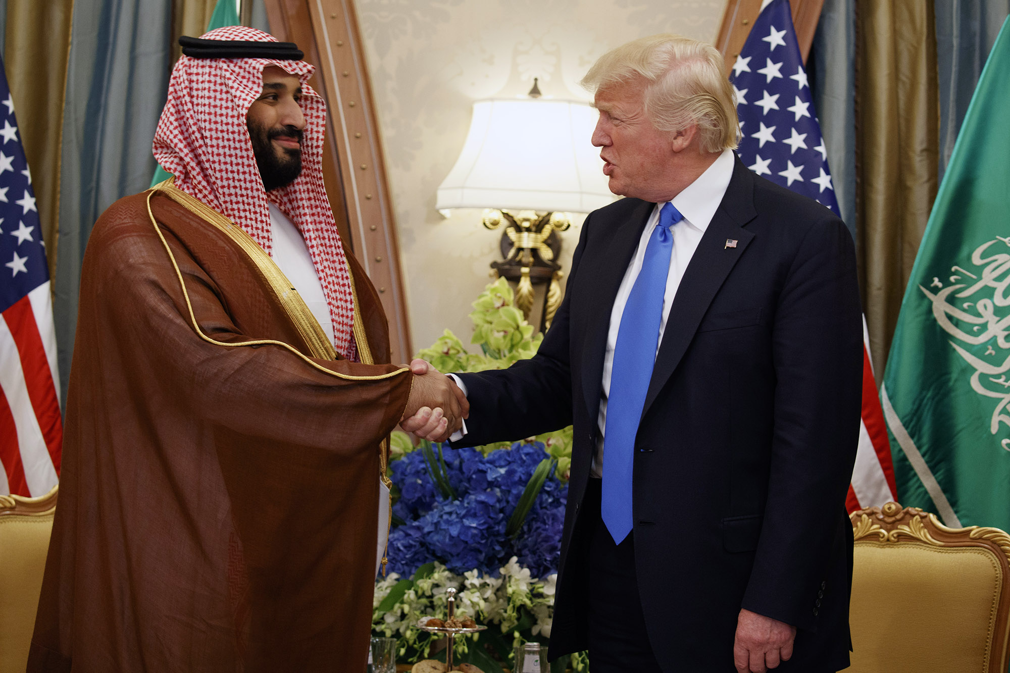 特朗普在2017年会见沙特王储本·萨勒曼。摄影师:埃文·沃奇/AP敬请关注《权力平衡》特别选举之夜版。