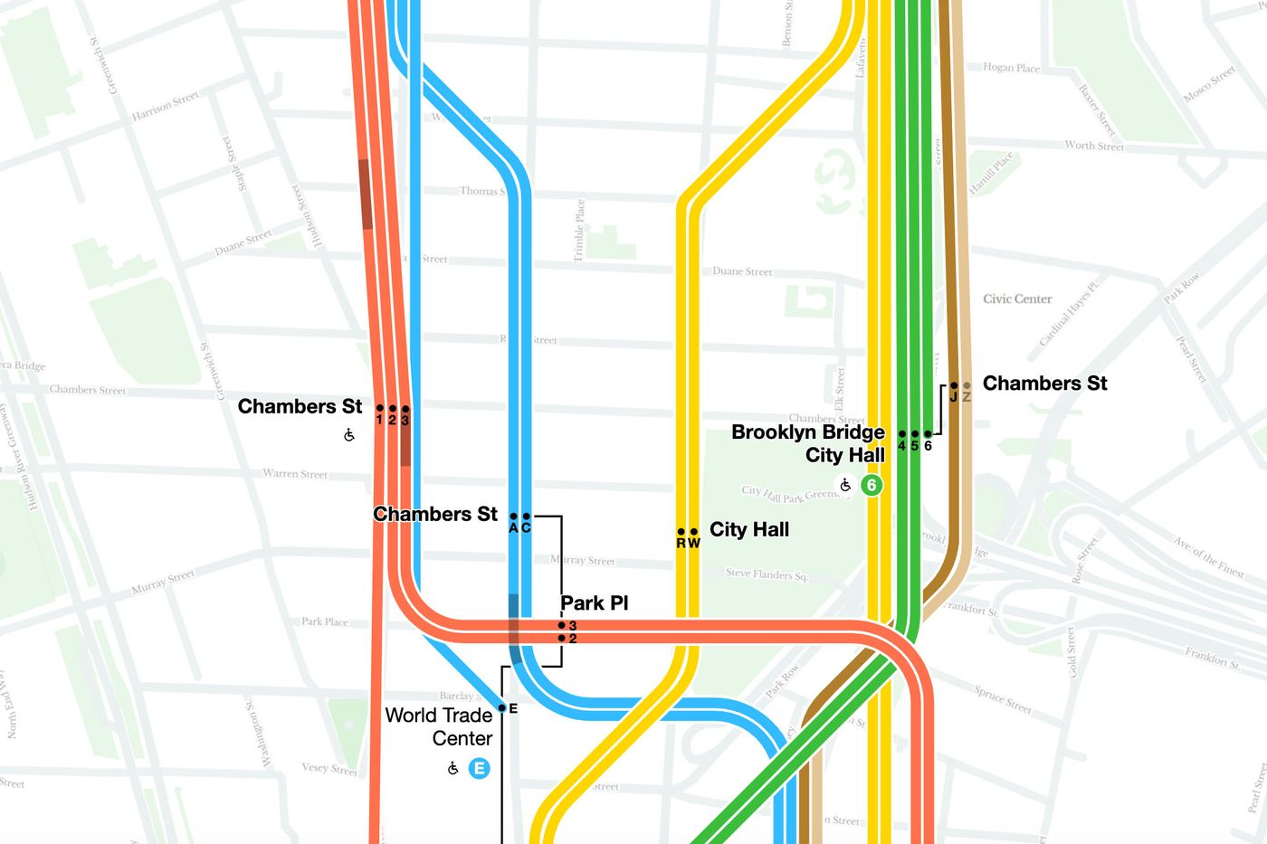 MTA的新地图视图,显示实时列车的小灰色条。纽约大都会交通局提供标志性的纽约市地铁地图现在是数字化的,而且是实时的。(Curbed)